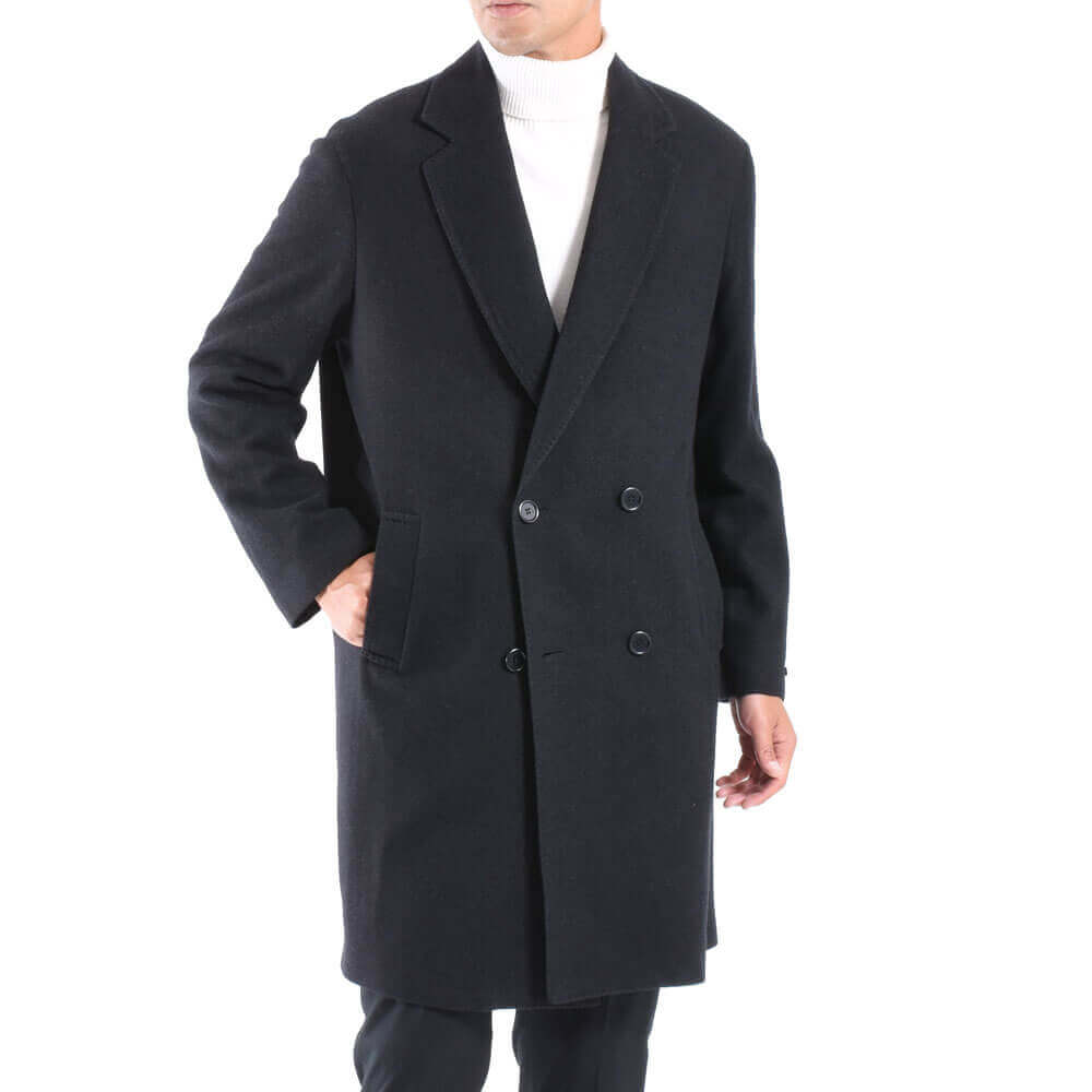 ・ダブルブレステッドながら抜け感のあるノッチドカラー、そして4つボタンというデザインが秀逸!さらに斜めに取り付けられた腰ポケット、筒袖という仕様によってカジュアル感がアップ。膝位置くらいまでをカバーする着丈によってエレガントな印象も漂います。ゆえにカジュアルからタイドアップスーツまでこなせる汎用性があるのです。