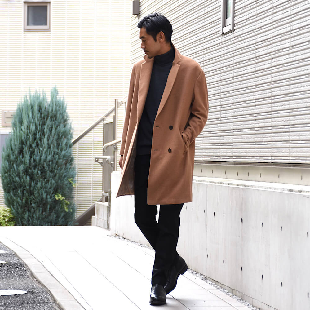 カジュアルなスタイルはもちろん、ドレッシーなスタイルにもバッチリ映える懐の深いコート。さっと羽織るだけで洒落っ気を醸します。