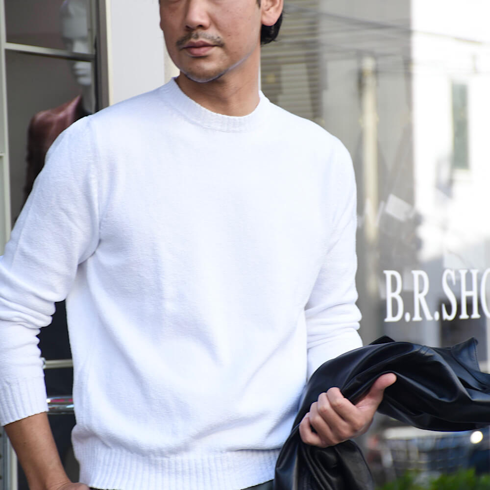 ・BRで定番ブランドとしてラインナップしている「FEDELI (フェデリ)」。春夏のニットは、スーピマコットンのハイゲージと8ゲージのミドルゲージを主軸としておりましたが、新たにふっくらとした編み地のラグジュアリー感あるニットが加わります。