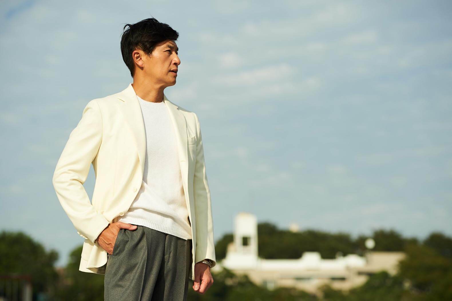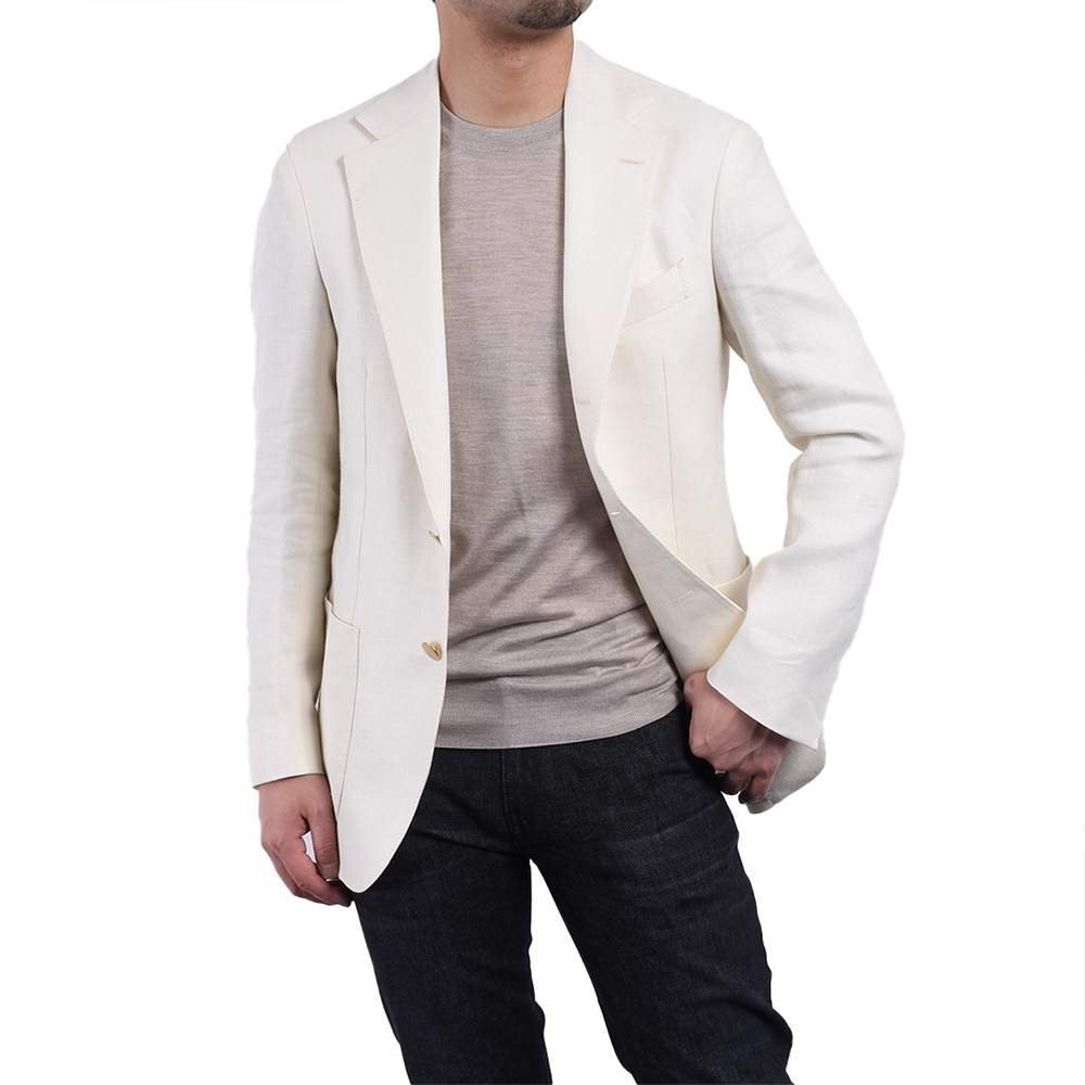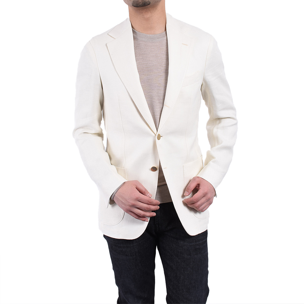 ・リネンの清涼感、そしてウールの弾力性によりシワが入りづらく通気性も優れています。クリーン且つ上品に映る軽やかなホワイト系で春夏シーズンにピッタリな一着。