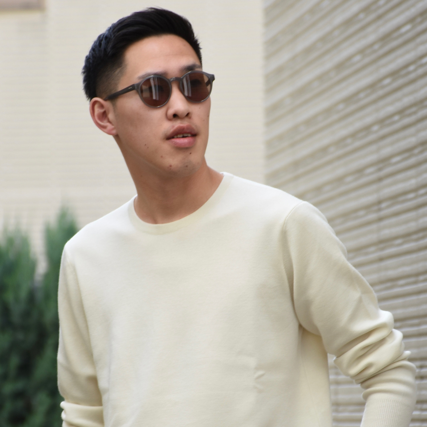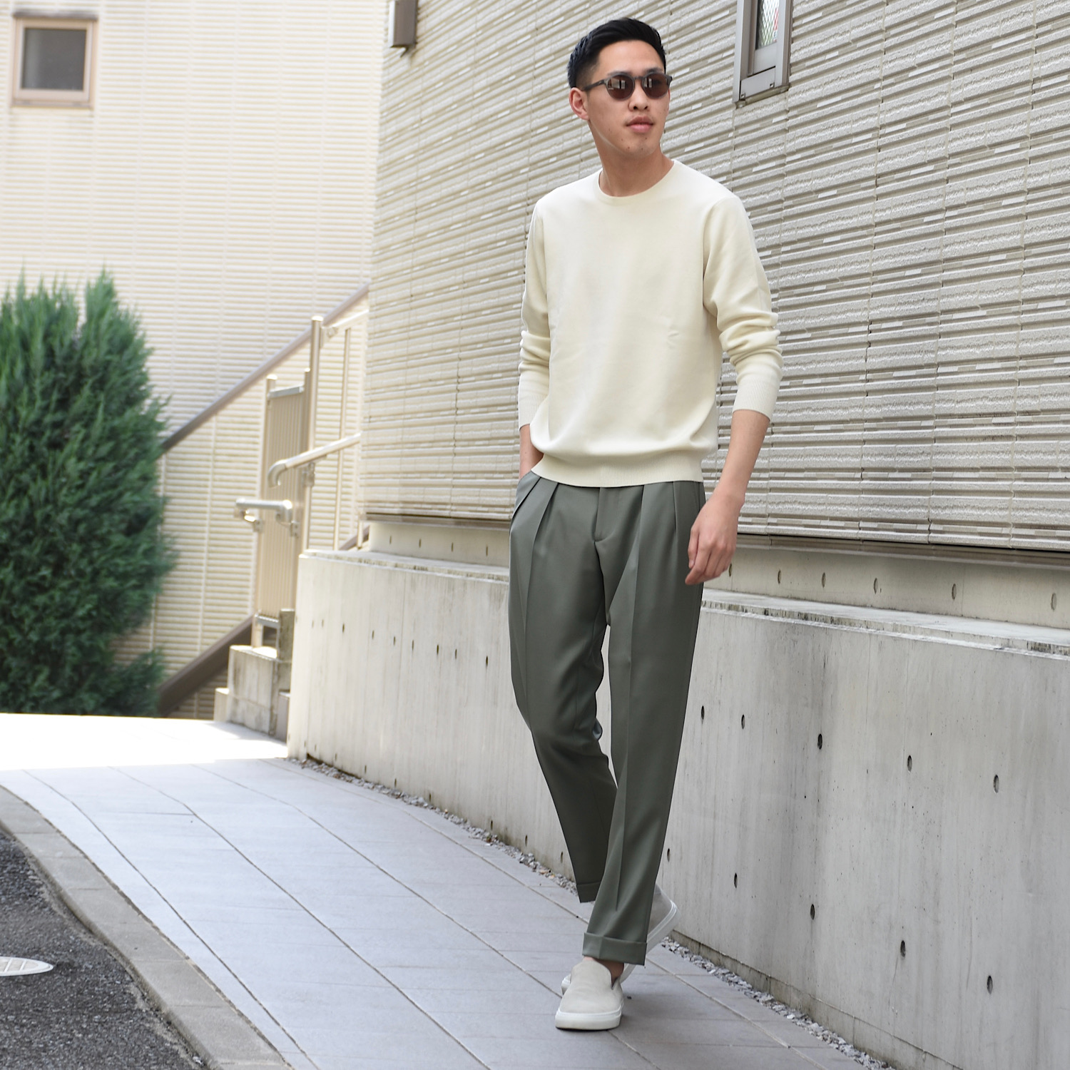 ・顔馴染みの良いボストンタイプのフレーム。それに対してレンズの形状はラウンド、というところが特徴的。さらにセミフラットレンズを採用することで、クラシックとモードが上手く融合されたスタイリッシュな雰囲気に仕上げられています。