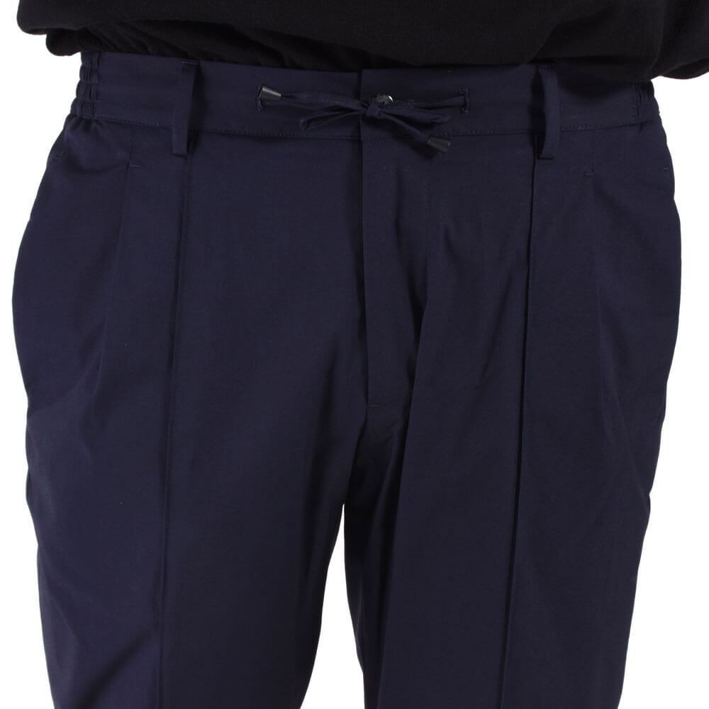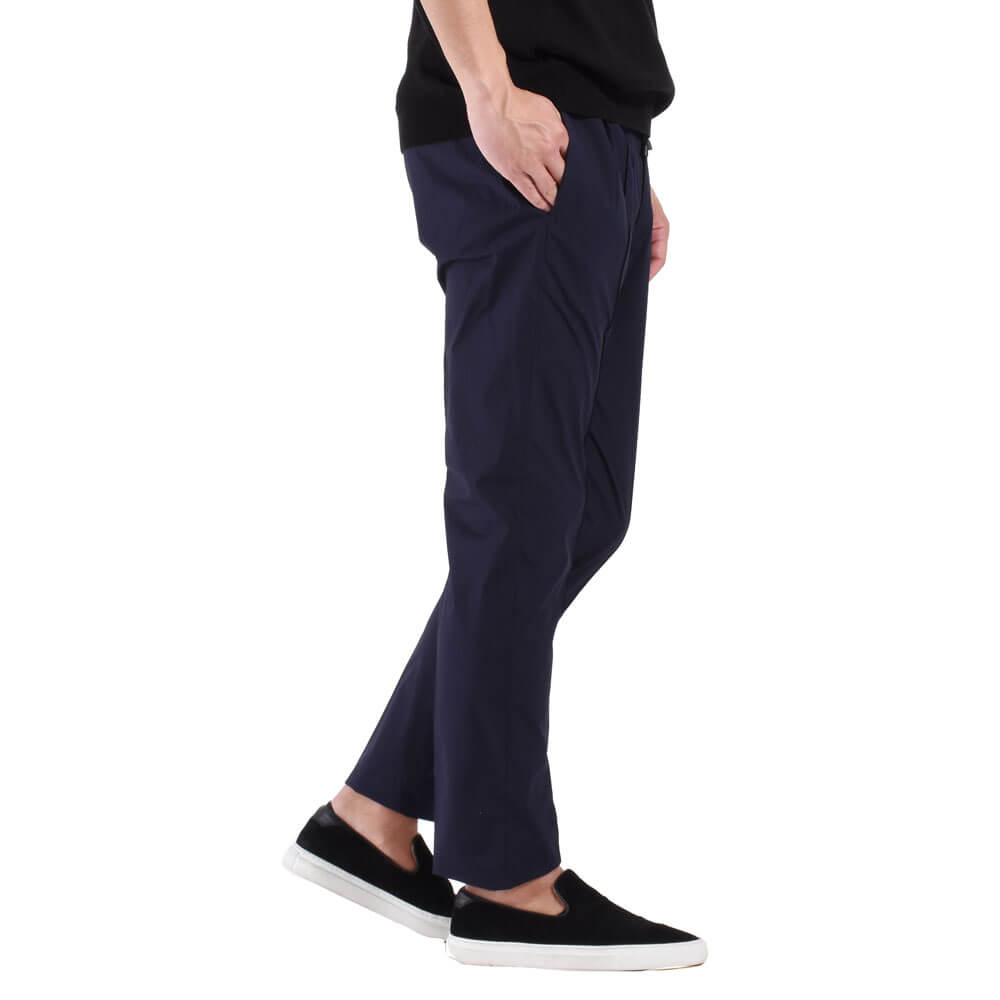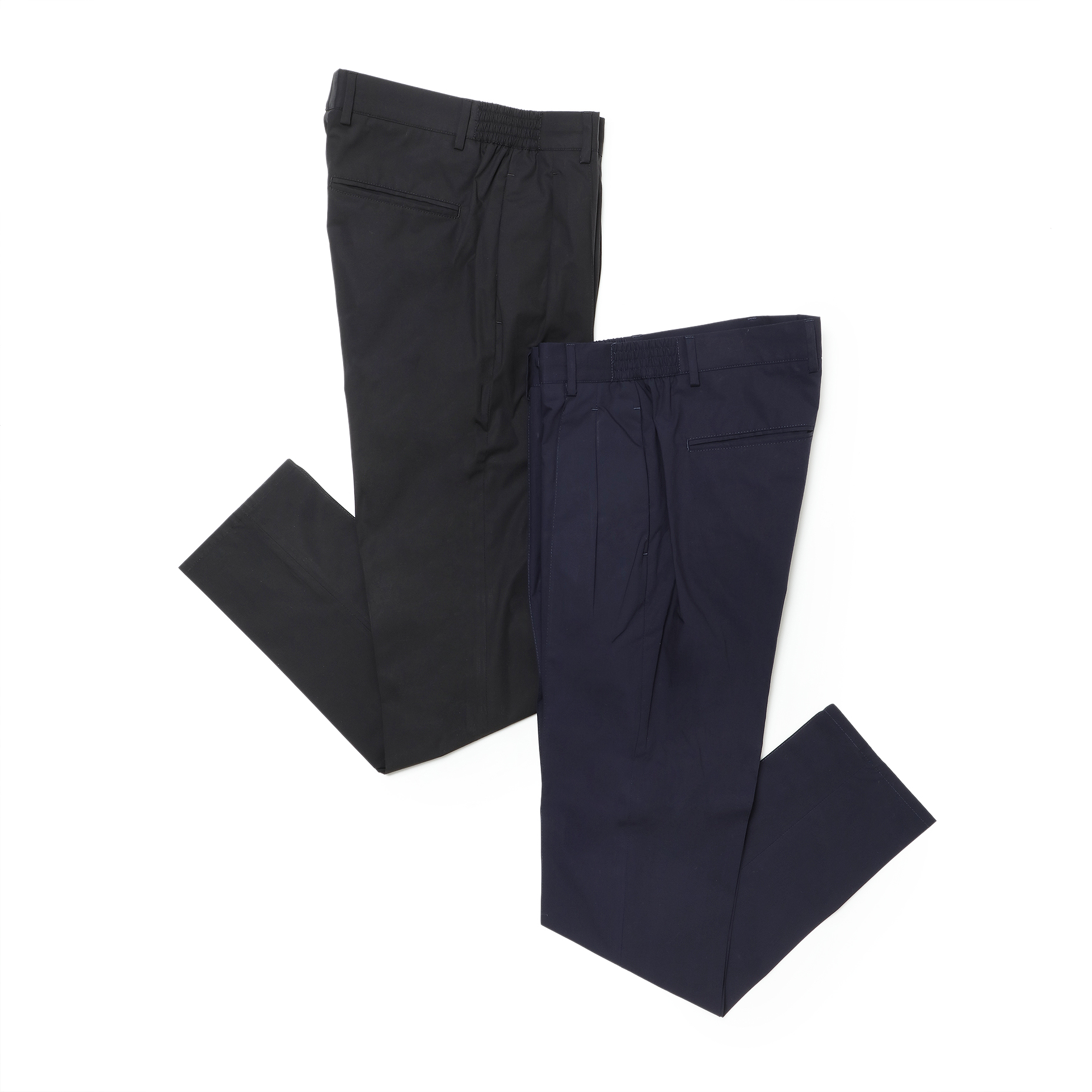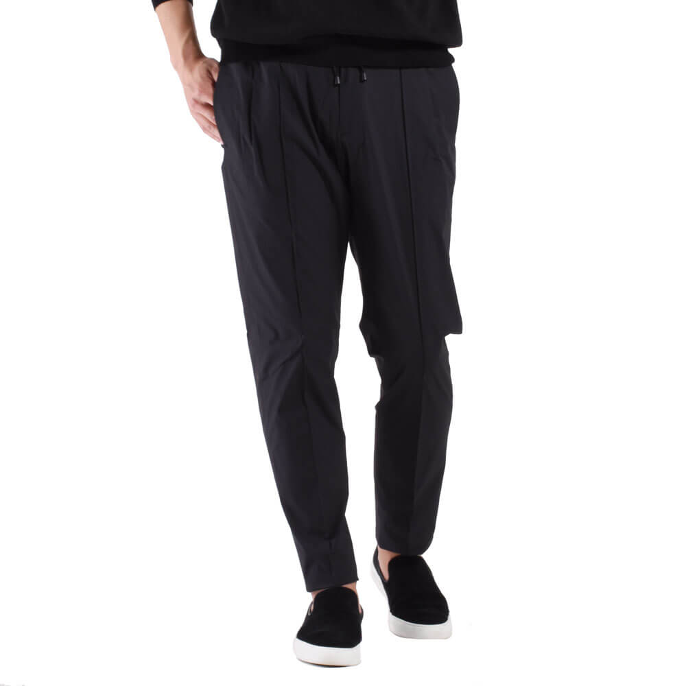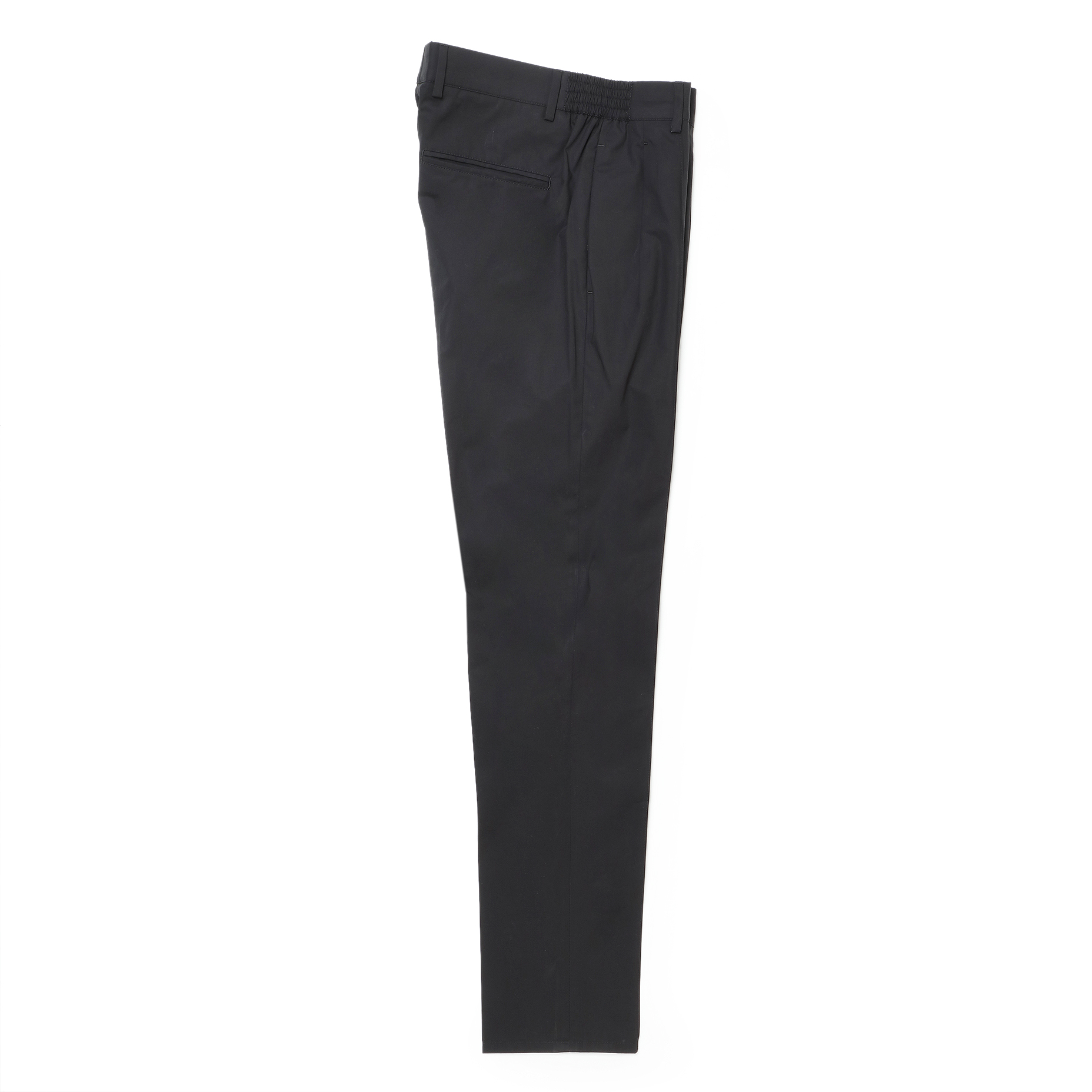 • フロントジップ、1プリーツ、永久クリース、ウエストサイドシャーリングゴム&ドローコード付き、裾口タタキ幅1cm