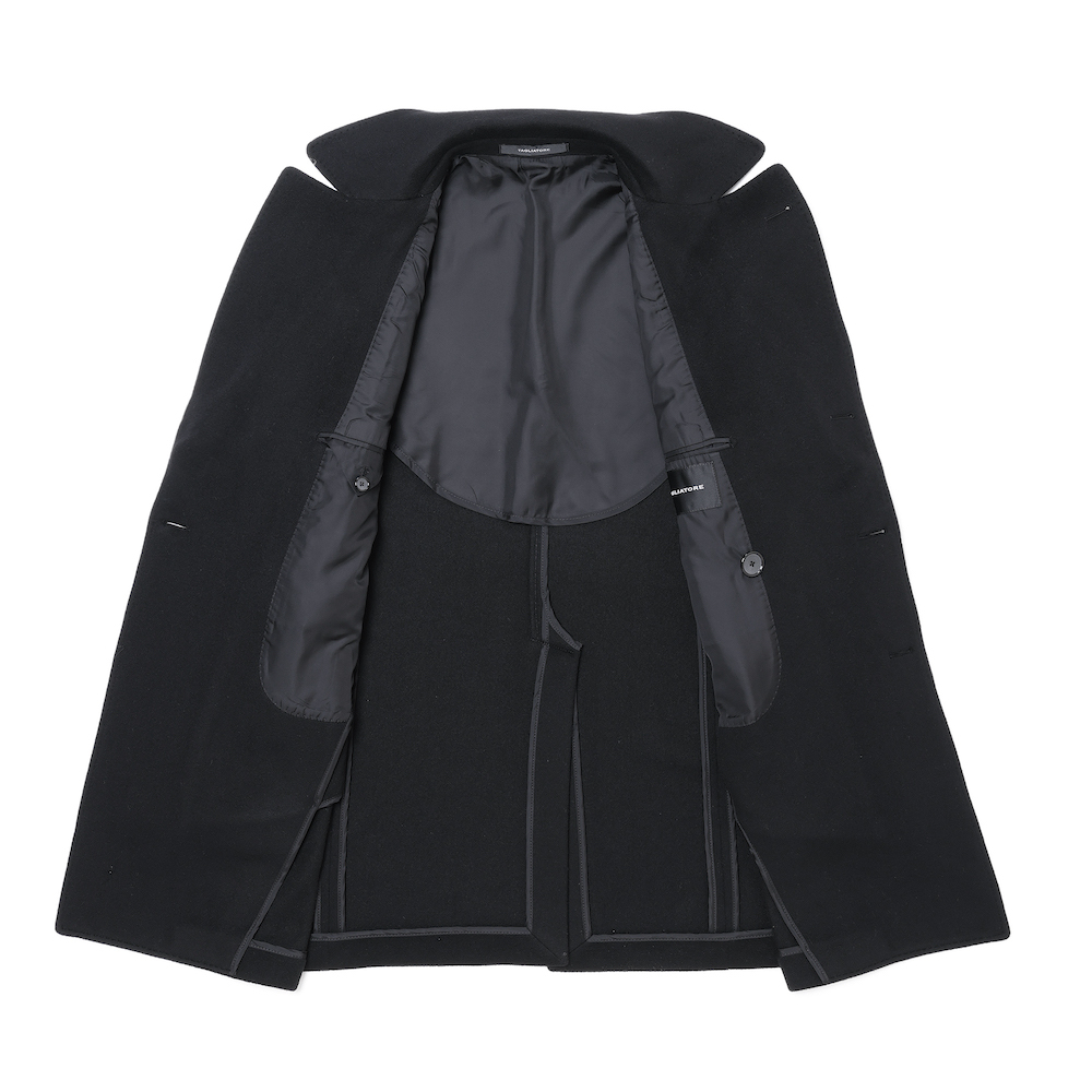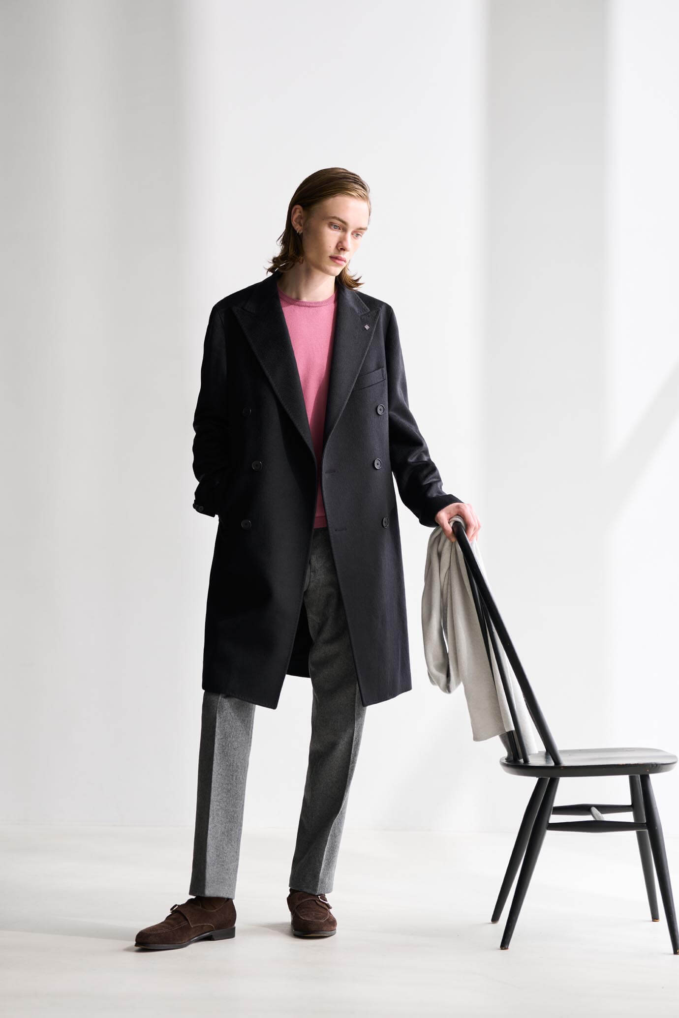 ・美しくシェイプされたウエストラインや膝上くらいの着丈がモダンなムード薫る仕様。ダブルブレステッドならではの重厚感はありつつも軽快感ある着丈によって、着こなしの幅が広がります。