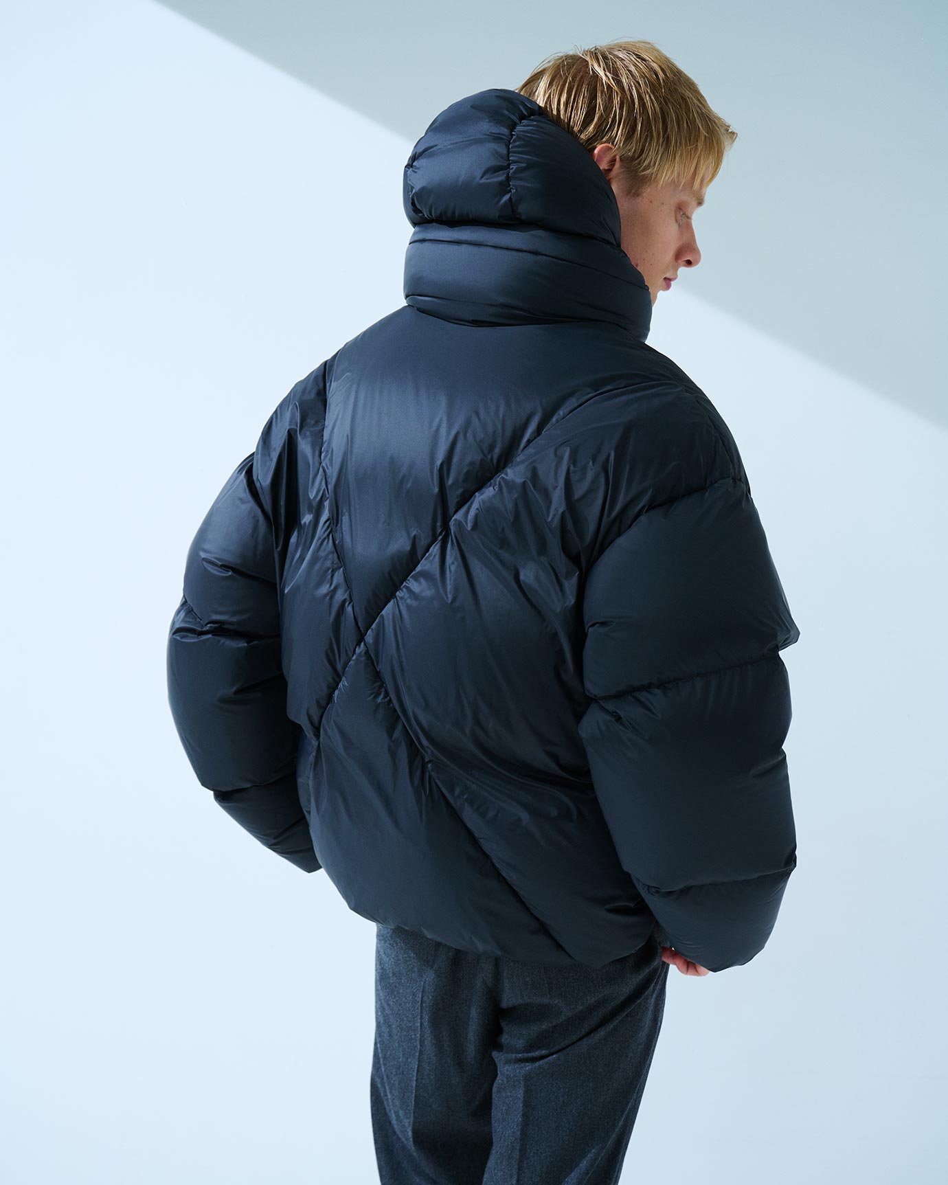 ・丸みあるボリューム感に加えて、独自性のある襟+フードのデザイン、全体的にモードな雰囲気を感じます