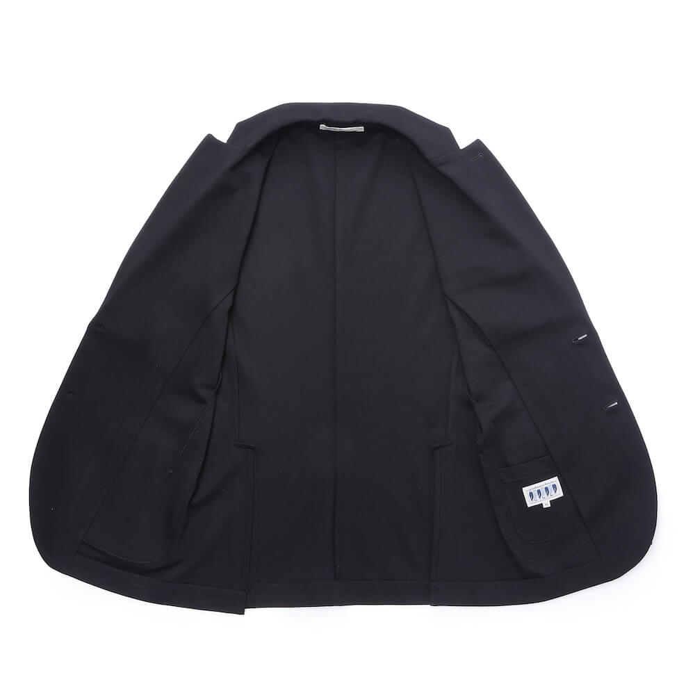 ・裏地なし、筒袖ではあるものの、ジャケットの要となるカラーとラペルはしっかりと二枚仕立てで、前身頃は見返し付き。また肩パッドは無しで柔らかい作り、生地の重さはあるものの軽快に着られます。