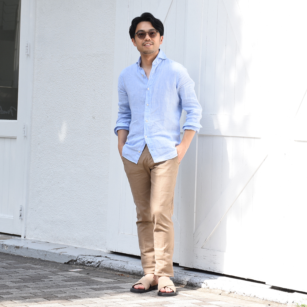 ・生地はカジュアル感のあるストレッチリネン&コットン。リネン混ならではの清涼感とガーメントダイによるこなれ感が春夏シーズンにピッタリです。
