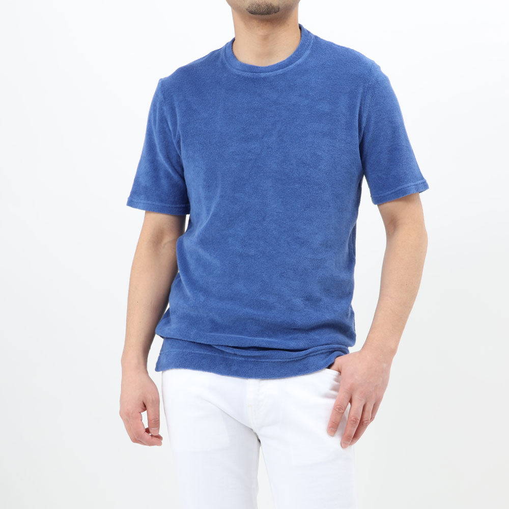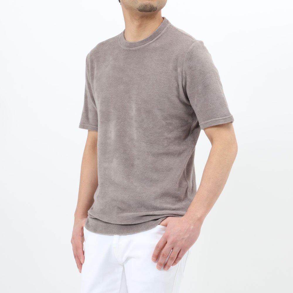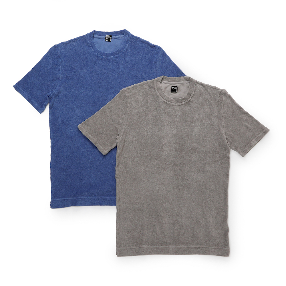 ・元々は胸ポケットとブランドタグがボディ脇に取り付けられていたのですが、B.R.SHOPではそれらを取り外すことをリクエスト。ベーシックな「FEDELI (フェデリ)」のTシャツを愛用されている方も違和感なく注目のパイル素材を取り入れることができます。