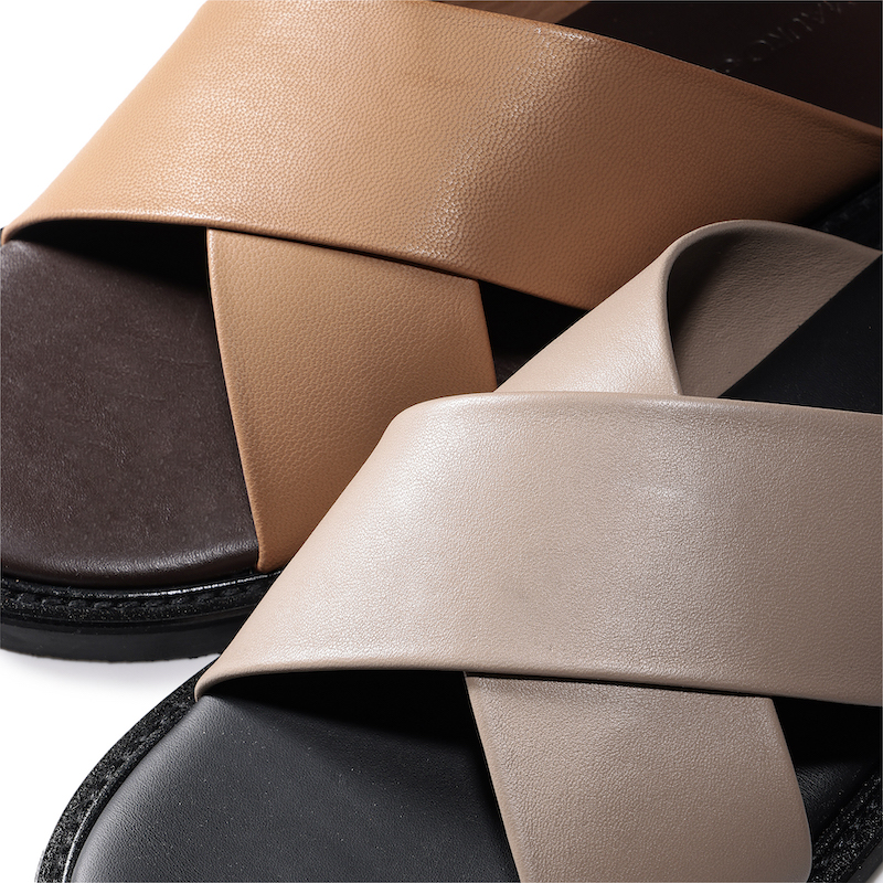 ・上質なレザーを使用し、コストパフォーマンスの高さも光る「MAURO de BARI(マウロ・デ・バーリ)」のサンダル。ナッパレザーとスウェードのストラップでご用意しました。