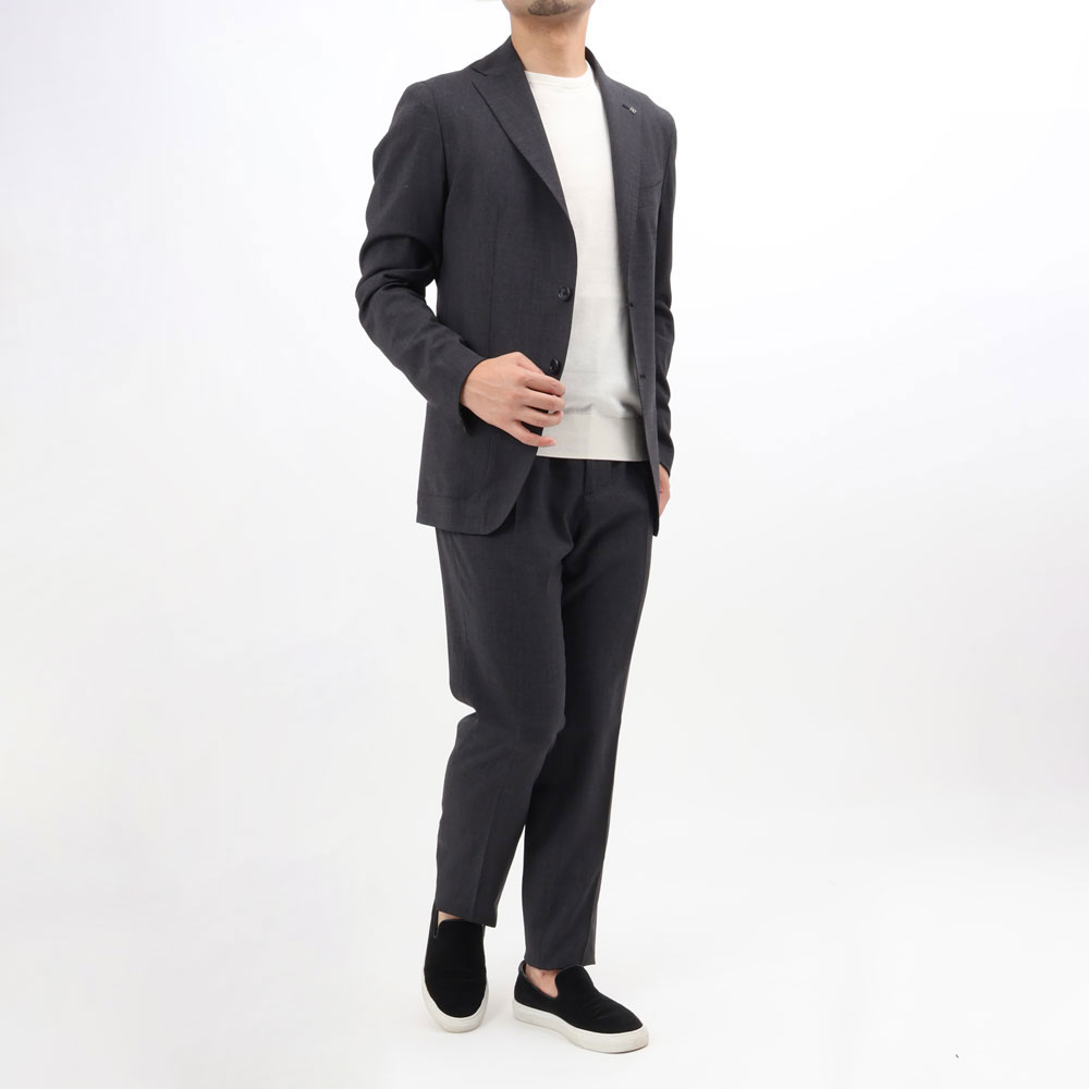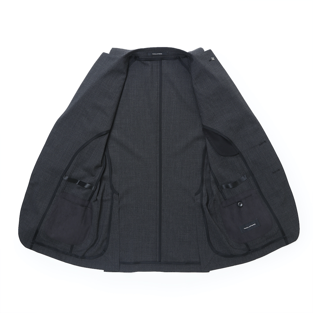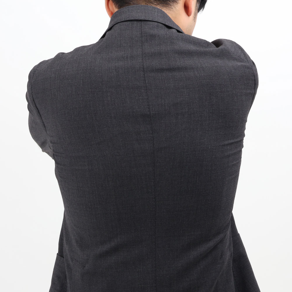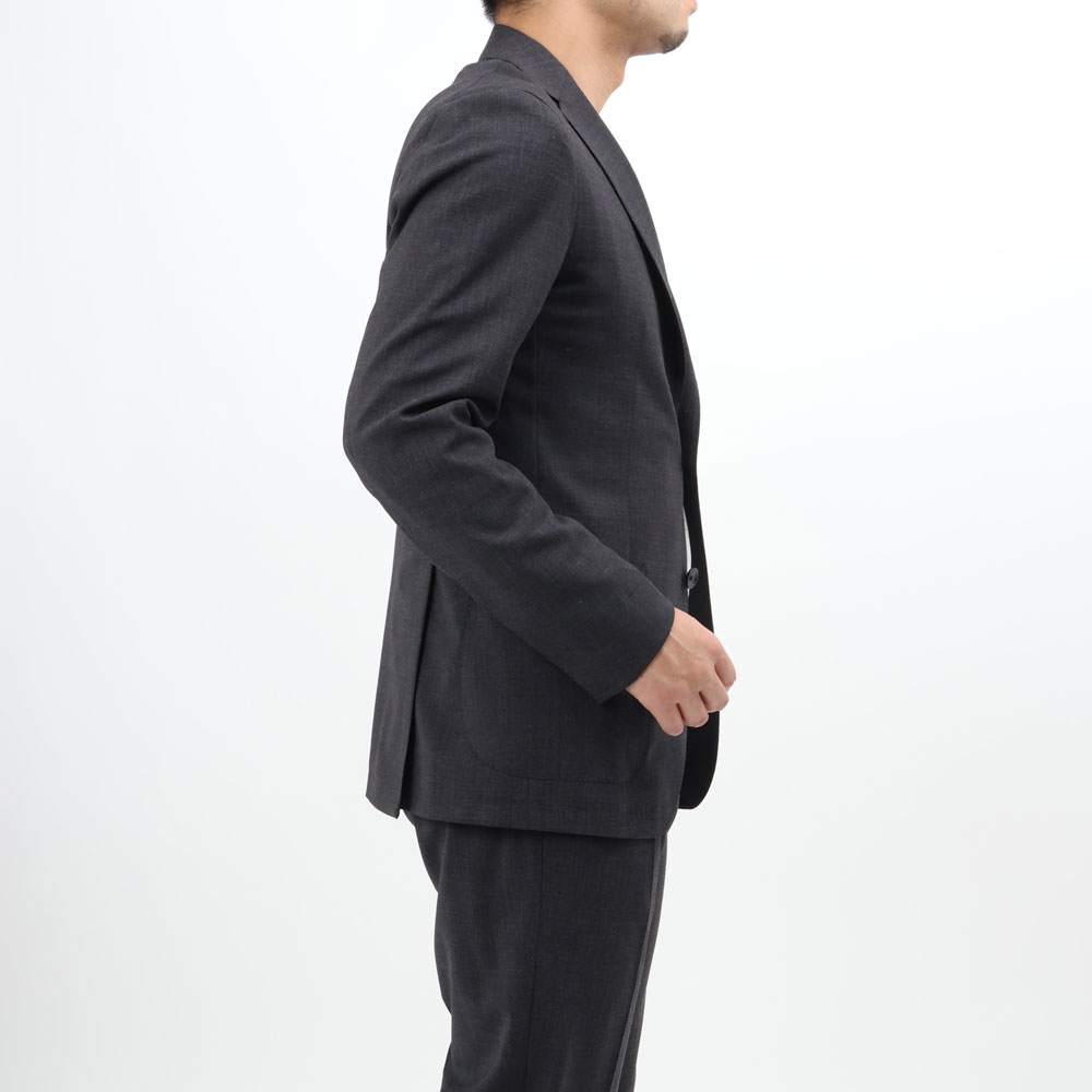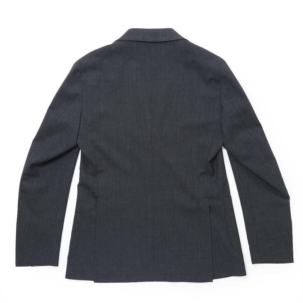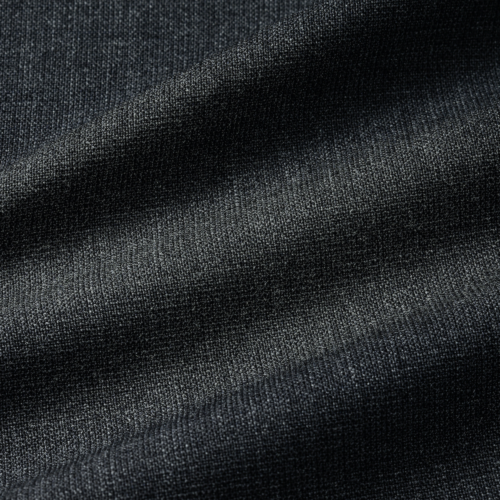 ・生地は真夏以外のほぼオールシーズンで着用可能なストレッチウール。ストレッチならではの快適な着心地、細かい織り柄による立体感、プレーンな生地感と軽さが特徴です。目付けは280グラム。ブラック/ダークグレーの2色をラインナップ。