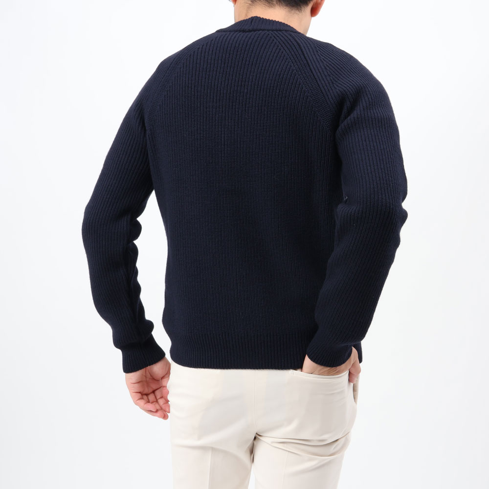 ・「ZANONE(ザノーネ)」が得意とするしっかりと目が詰まった耐久性の高い編み地はヴァージメリノウール100%。ミドルゲージ相当で肉感はあるものの、全面に施されたリブ編みにより伸縮性が十分確保されており、快適な着心地です。