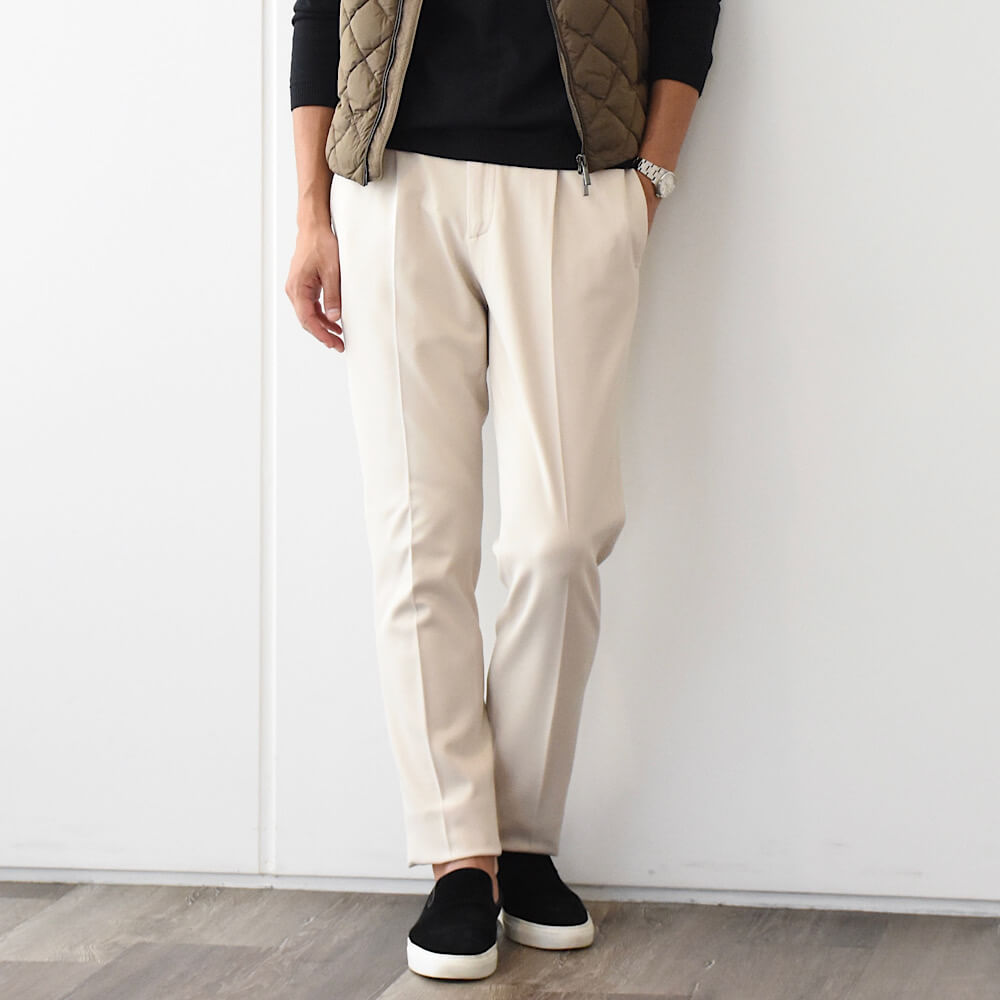 ・進化系パンツの代表である「giabsarchivio(ジャブスアルキヴィオ)」が元々得意とするのは"カジュアル穿きもできるスラックス"というジャンル。その系譜を受け継ぎ、アップデートさせたモデルが”DANTE(ダンテ)”です。