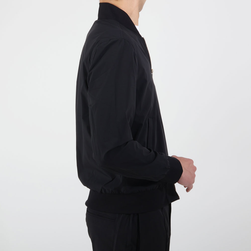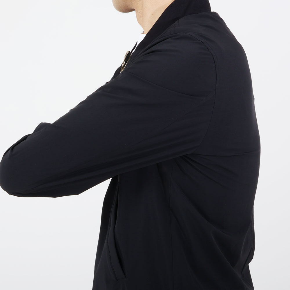 ・スポーティなナイロンブルゾンなのに袖裏も付いた総裏仕立てにより、薄手の生地が載せられていても身体のラインを拾い過ぎることなく立体的に見せてくれます。また、裏地は滑りと通気性の良いメッシュとなっています。