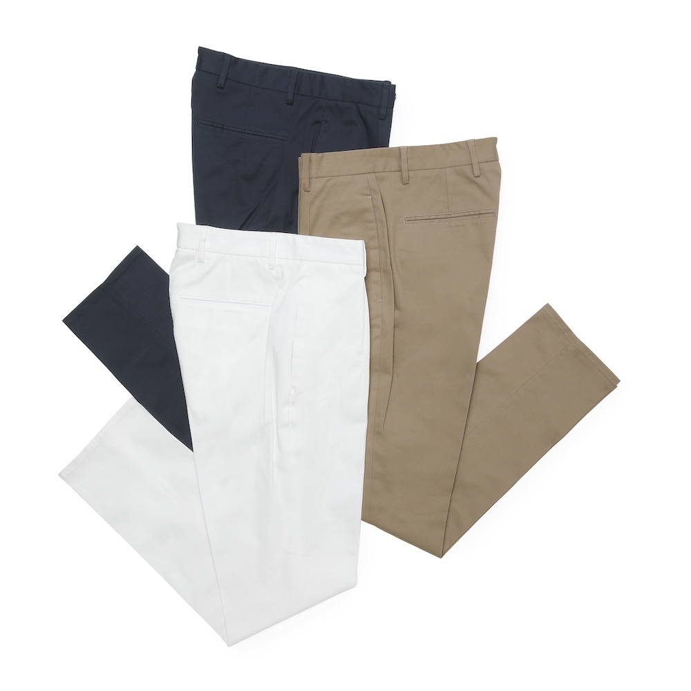 ホワイト / ブラック / チャコールグレーの3色をラインナップ、組下パンツはこちらから。