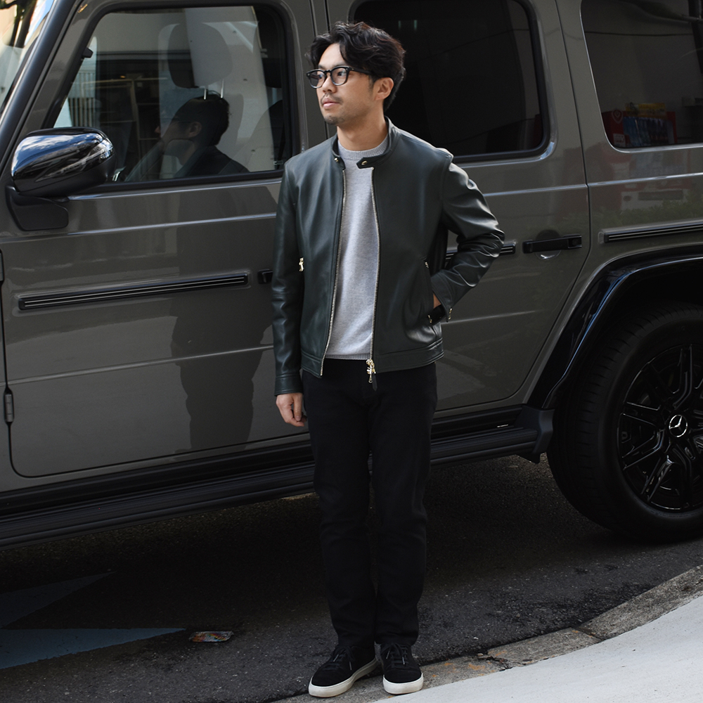 ・元々は幅広だった袖と裾のリブを細め(およそ3.5センチ)に別注。ネックリブは耐久性ときちんと感もあるダブル(二重)に対して袖と裾はシングル(一重)リブ。細かいですが、これによって軽快さが生まれ、現代的な表情にアップデートされています。
