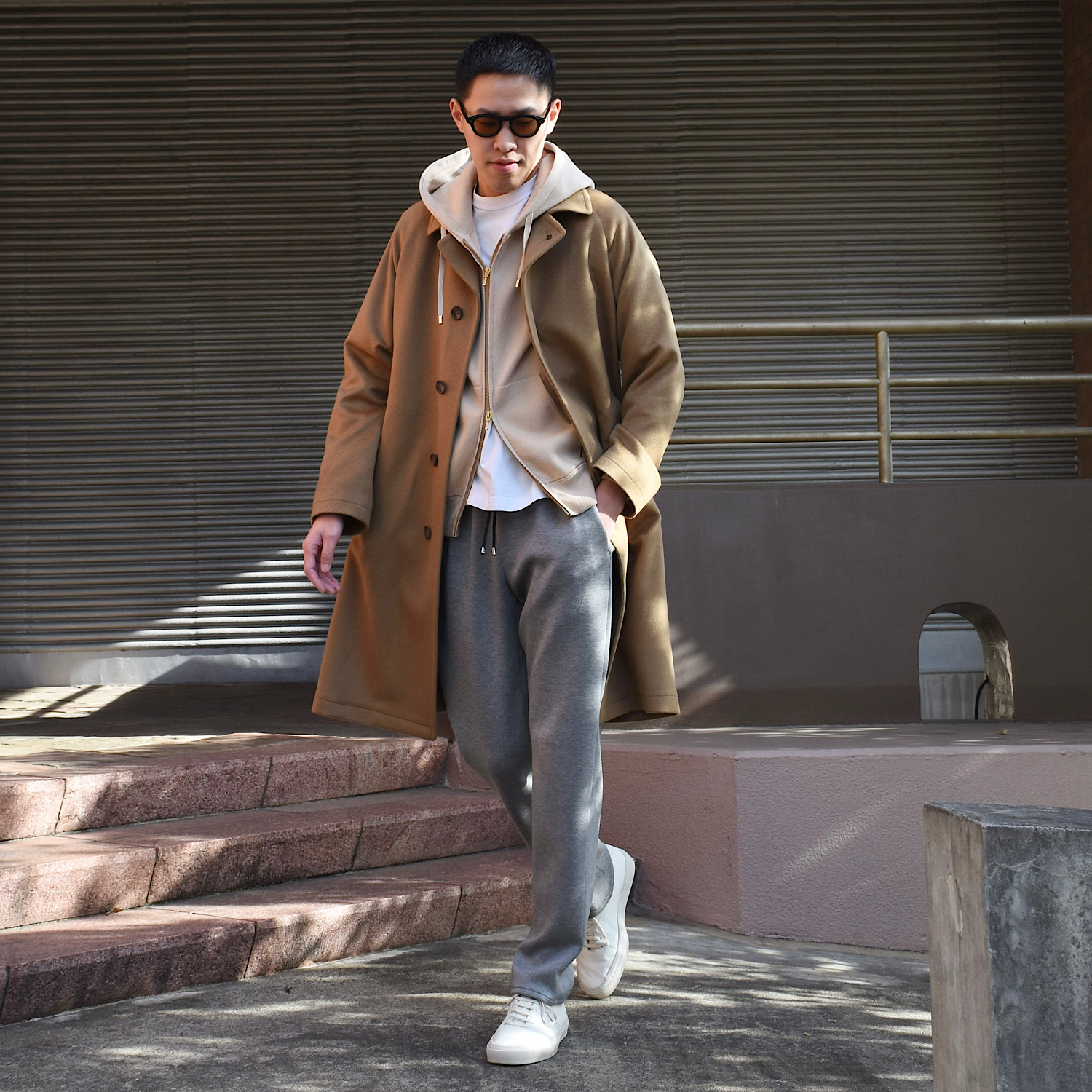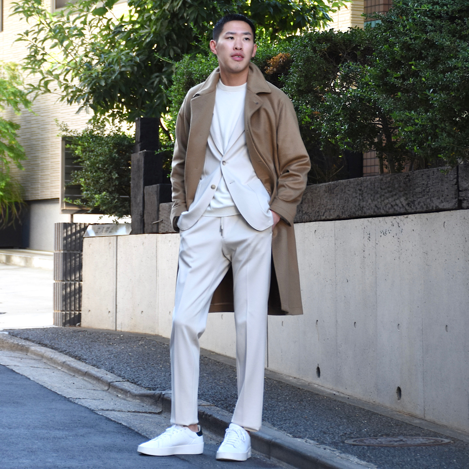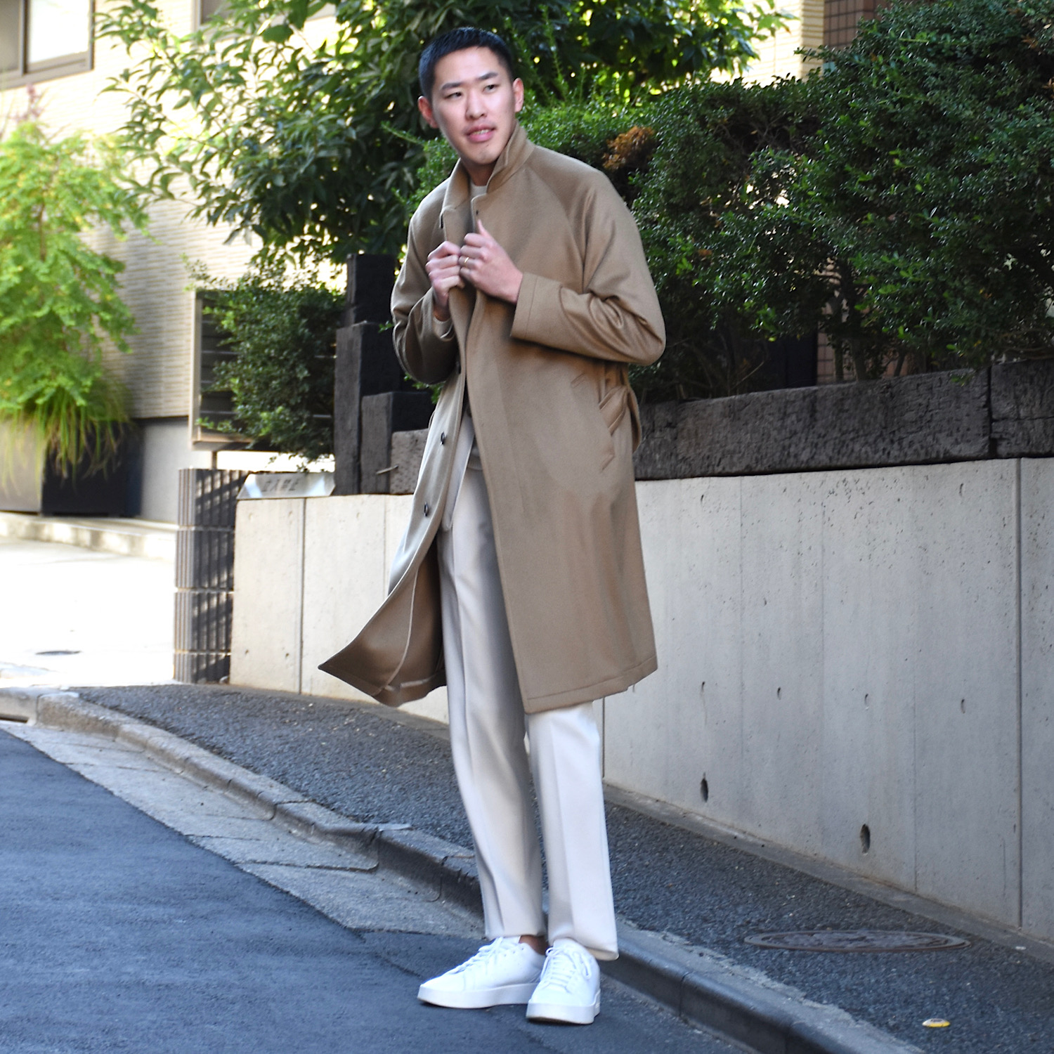 ・羽織ると感じる身幅や袖幅のゆとり具合が絶妙!決してオーバーサイズには見えず、Aライン過ぎることもありません。バルカラーならでは抜け感が程よく漂います。