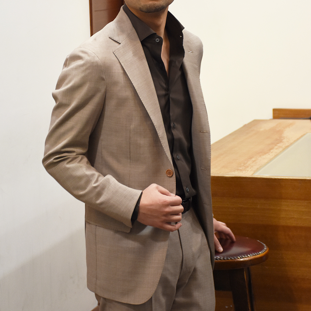 ・「Maria Santangelo(マリア・サンタンジェロ)」のブランドタグに入れられた「2+2」は4箇所がハンドポイントという意味(以前は2箇所のみがハンドで後から2箇所が加わったので2+2となっています)。袖付け・サイドガゼット・ボタン付け・剣ボロのカンヌキ留め、その4箇所がハンドポイントです。
