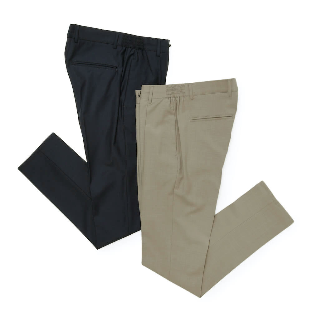 ・2色のラインナップ、同生地のジャケット(グレージュ/ネイビー)とセットアップでどうぞ。