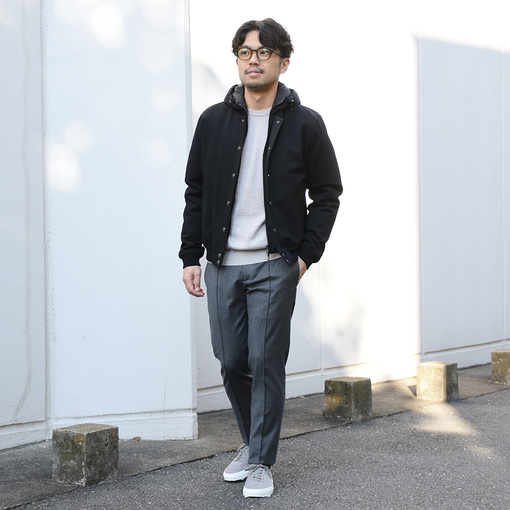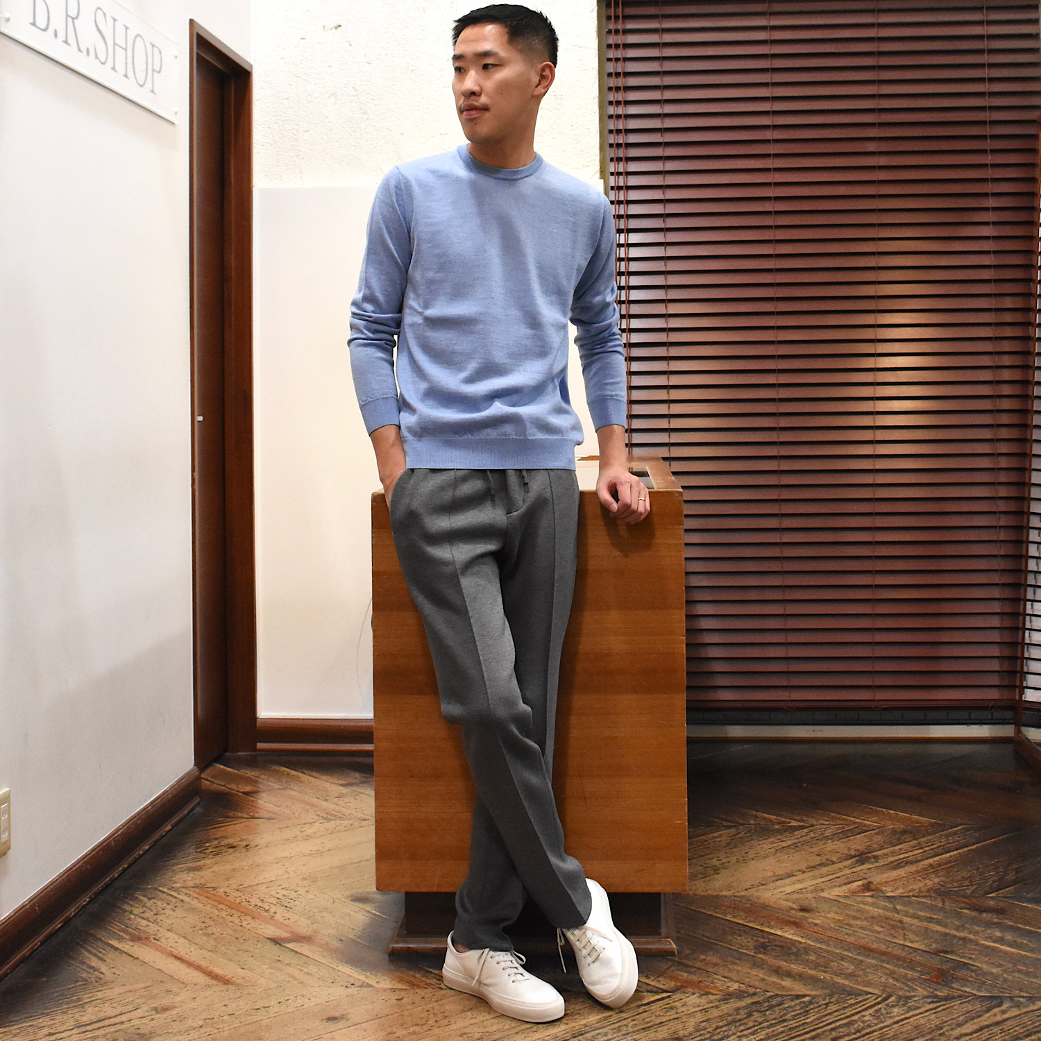・ハイゲージながら身体のラインを拾わず、クセのないスタンダードなシルエット。ゆえに着こなしの幅がとても広い一着です。