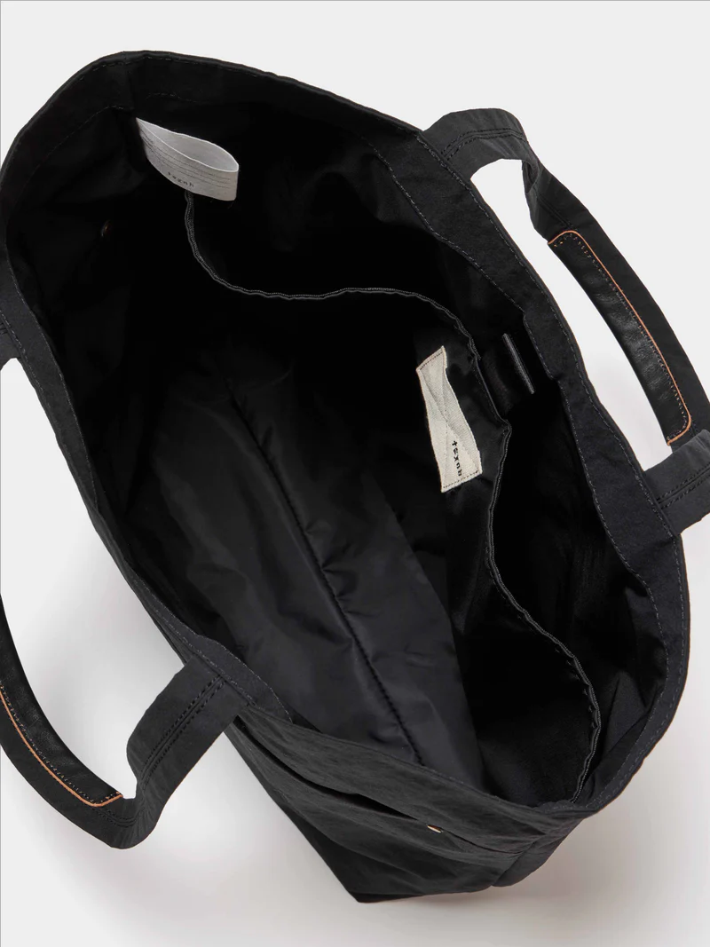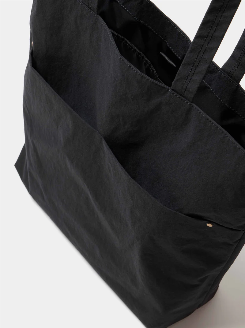 薄く、軽く、自立する。 シンプルながら実用的な要素をすべて備えたトートバッグ。