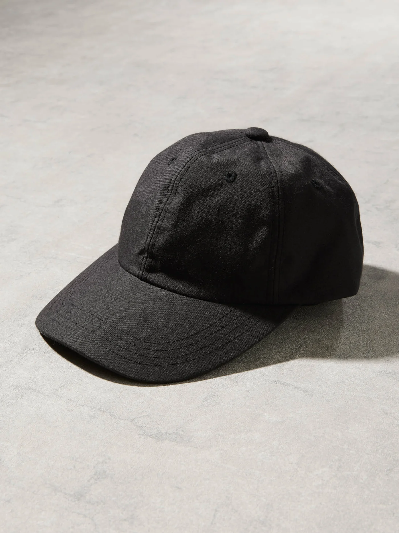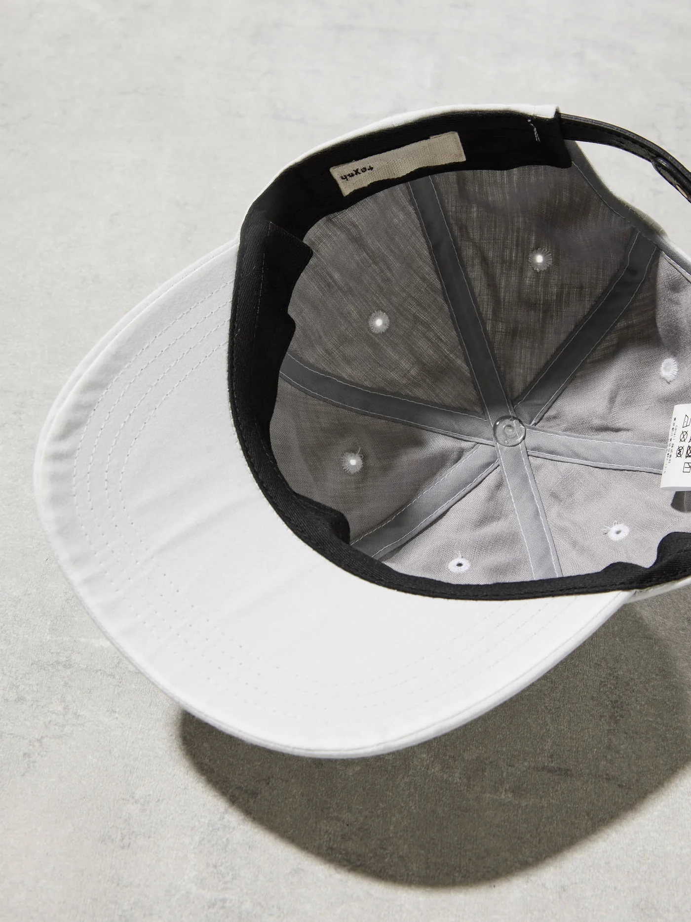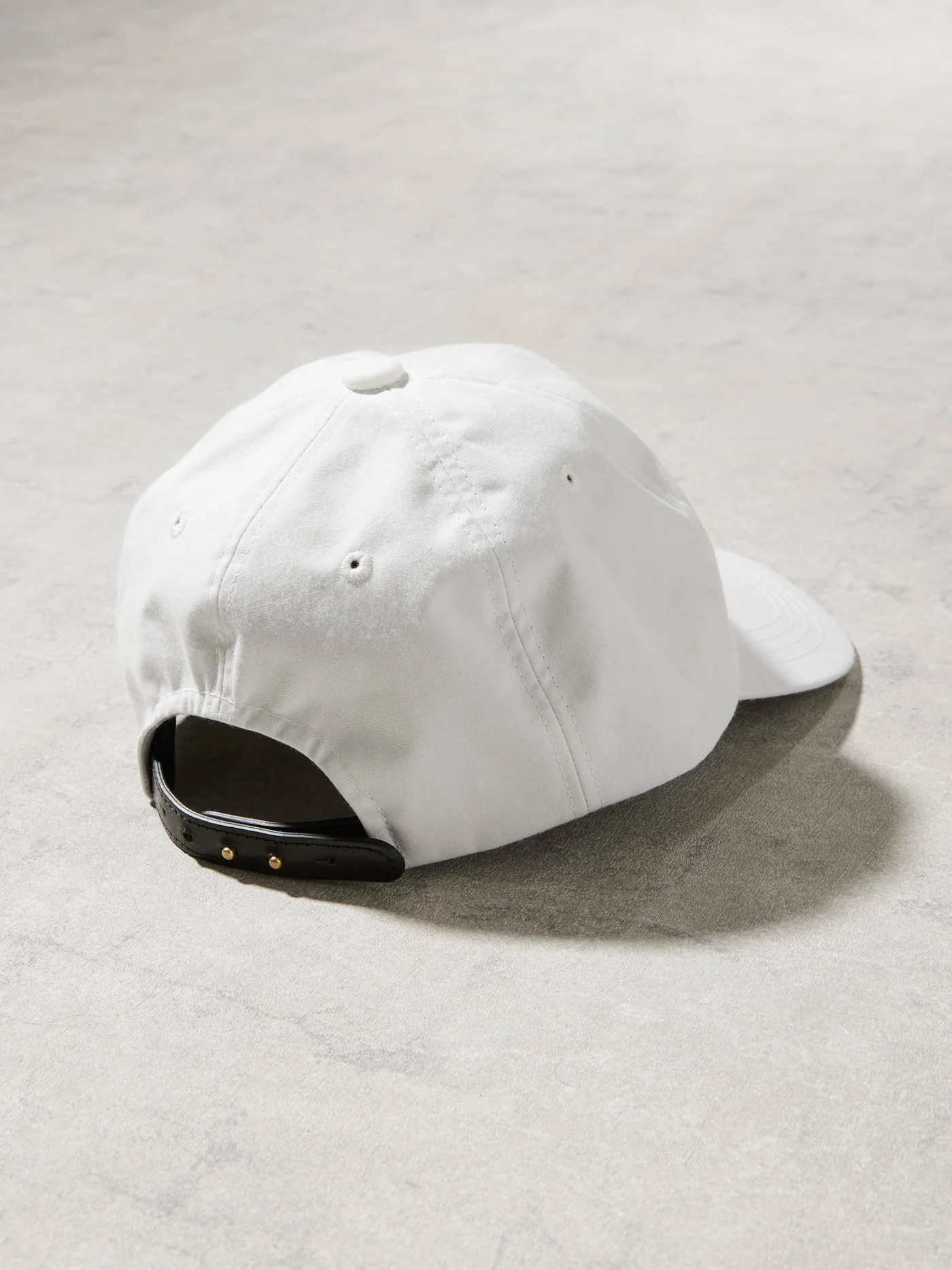 レザーと真鍮金具を合わせたパーツで調整が可能な浅めのキャップ。内装には通気性と吸湿性を備えた麻帆布を使用。