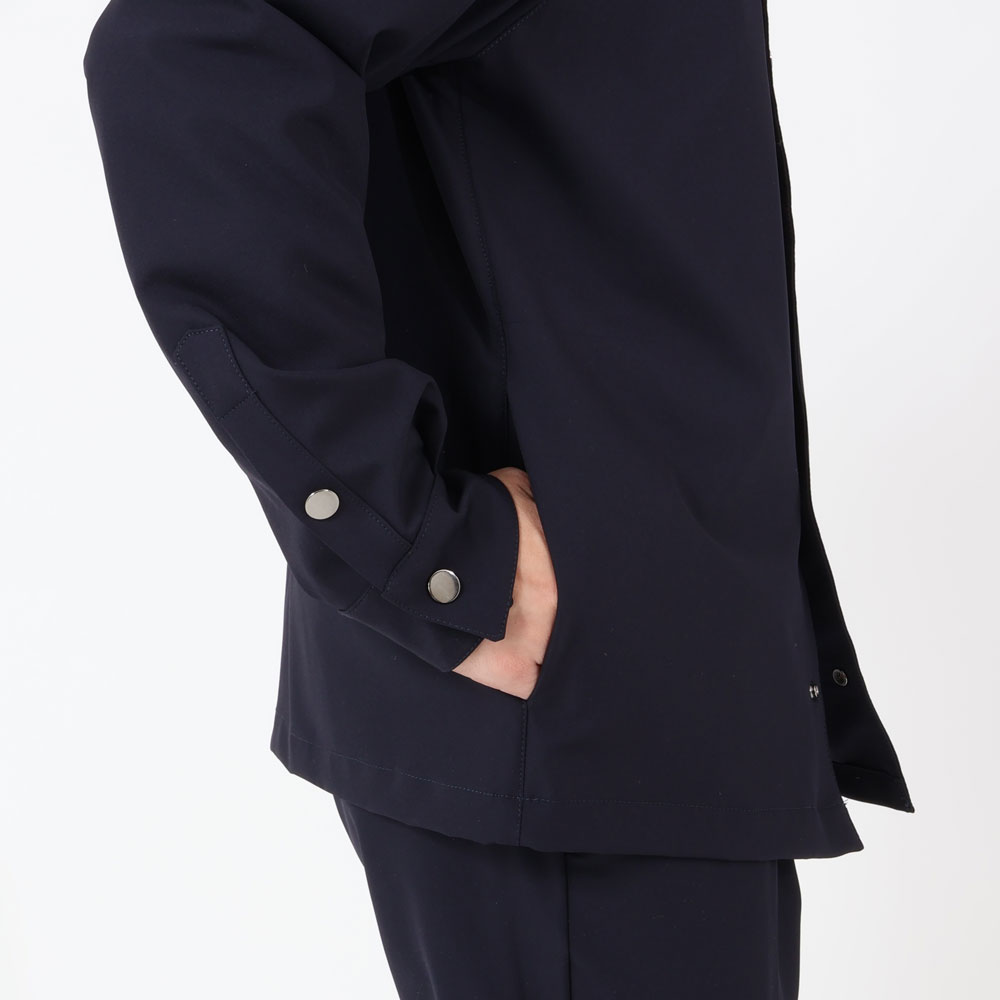 高いストレッチ性により動きが快適、シワになりにくいので長時間移動の時でも綺麗なままで安心して着用できます。セットアップはもちろん、単品使いでも活躍するブルゾンです。サイズM(48)を着用し、ほんのり緩めのシルエットですが、綺麗に着用できリラックスムードを楽しめるサイズ感でした。