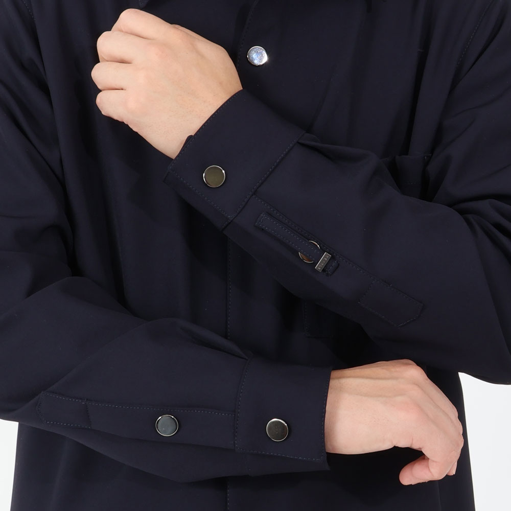 ・高いストレッチ性、豊かな弾力性、適度な肉感があり、夏以外は着用できます。ブラックとネイビーの2色をラインナップ。セットアップとなるパンツはこちらから。