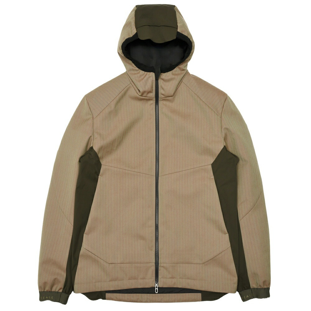 ・これによりレザーパーカーがさらに大人っぽく、またフロントジップをトップまで上げた際には台襟+襟で二重になり、フードが立ちやすくスタイリッシュに。