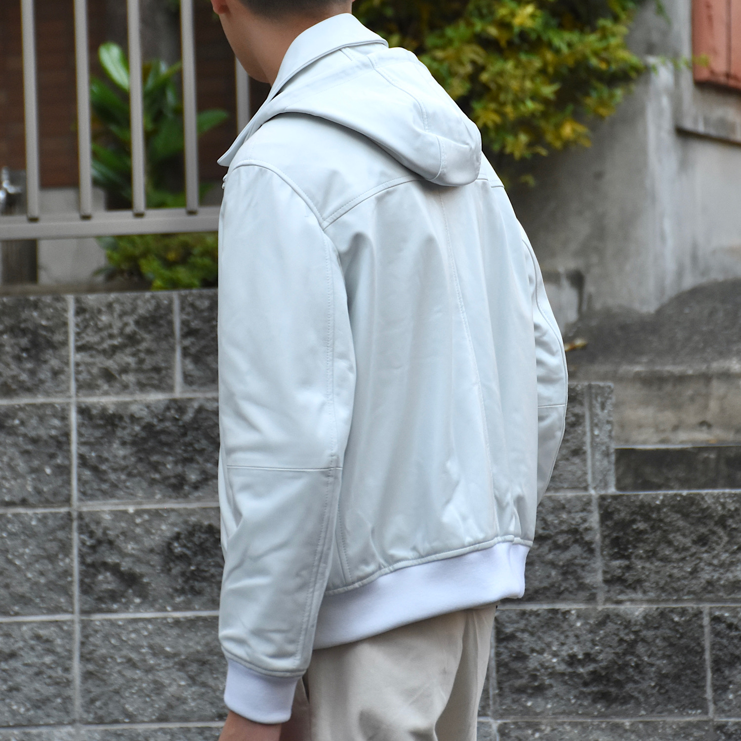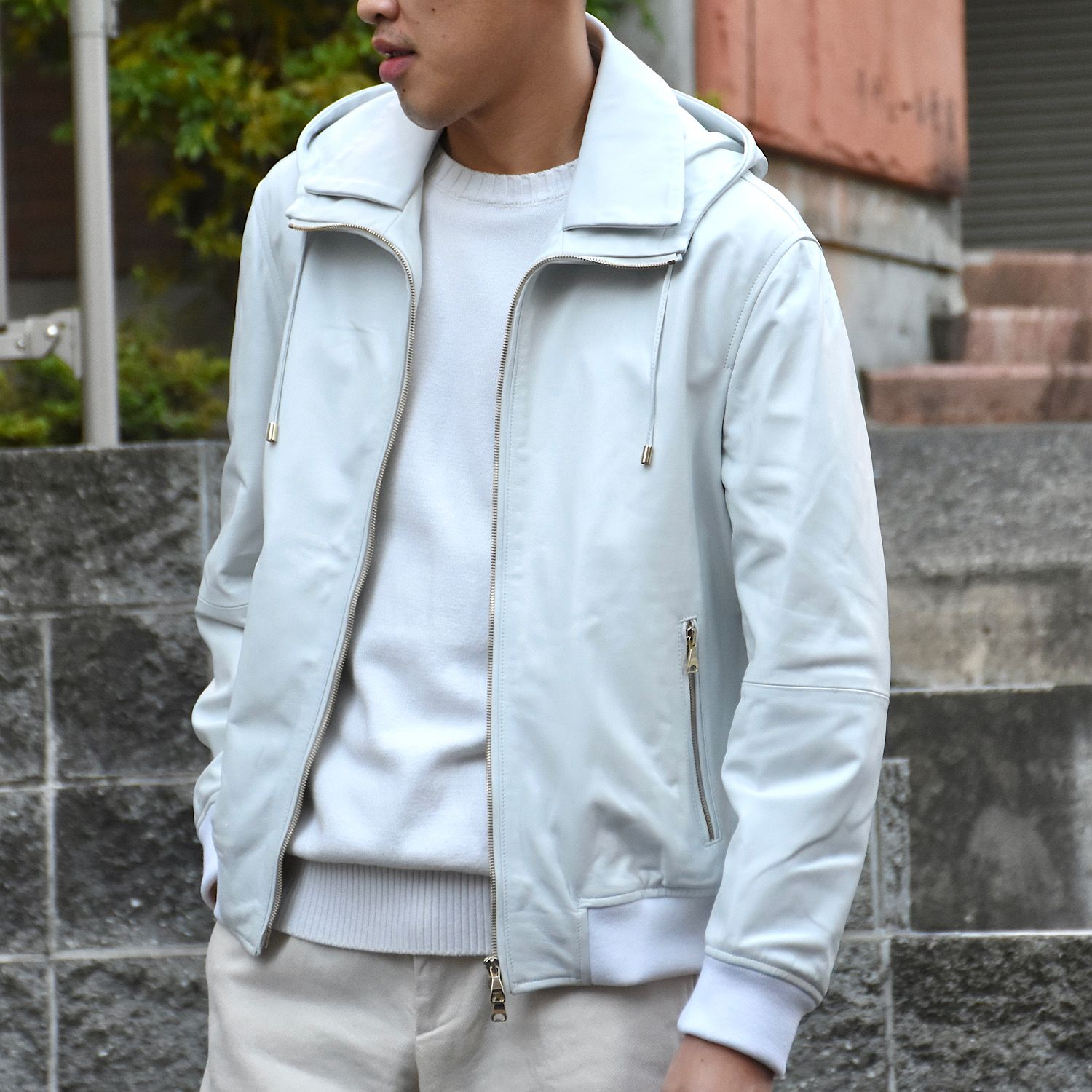 エンメティ / 【完全受注生産】BR完全別注ナッパシルクレザー ジップアップパーカー/BR_MILO/BIANCO