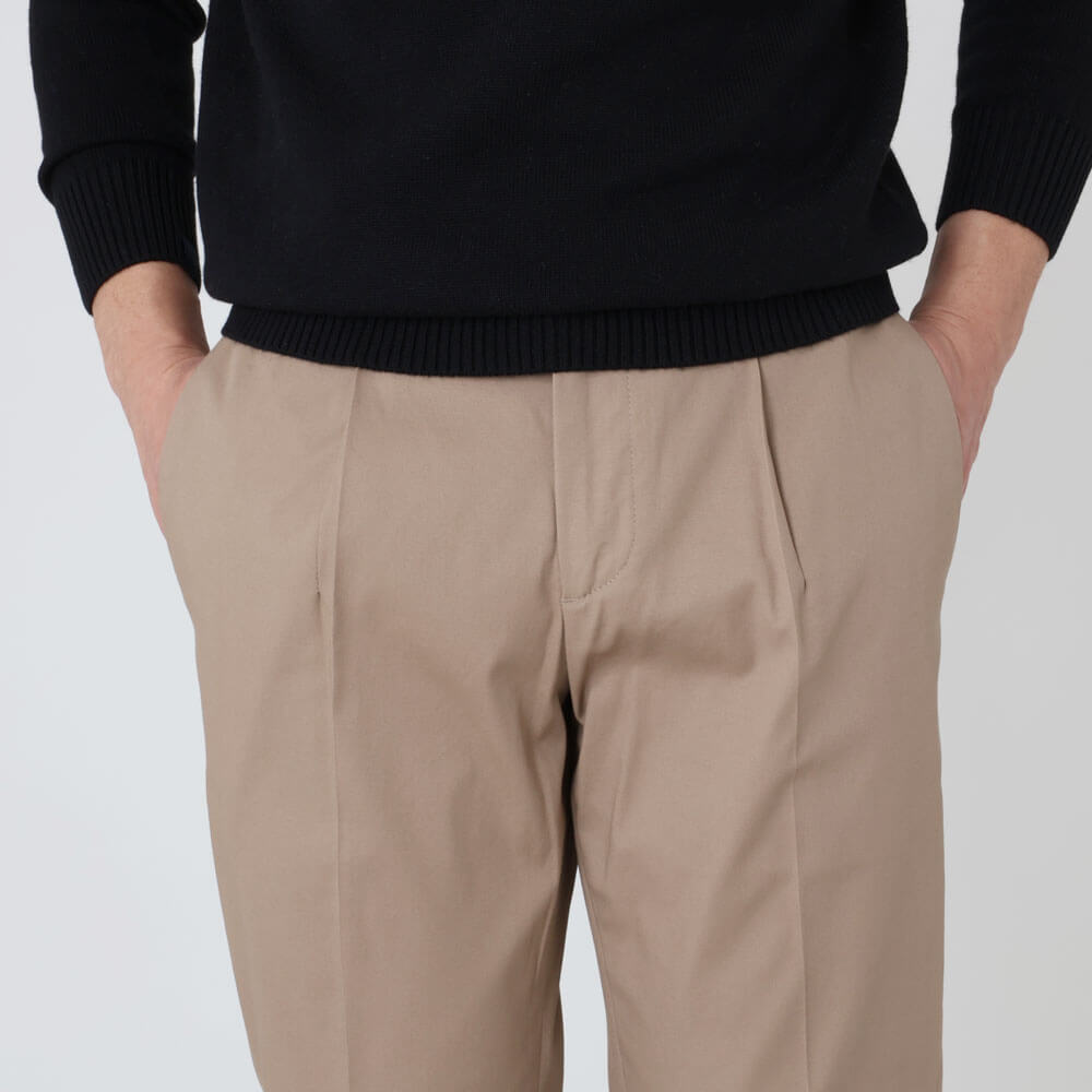 ・1プリーツが入っていることでやや余裕のある腰廻りになっており、丸みある腰廻りのラインに対して膝から裾にかけてテーパードをかけたメリハリあるシルエットが特徴。ジャブス流のベーシックスラックスです。