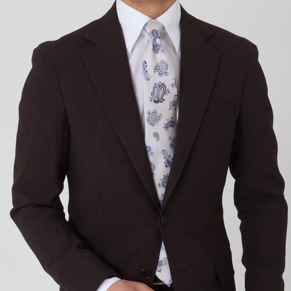 ・クラシカルなペイズリータイを柄の大きさや配色によって、現代的に見せるのは「FRANCO BASSI (フランコ バッシ)」が得意とするところ。シルバーベースは軽やか、ネイビーベースは品良くまとめられています。