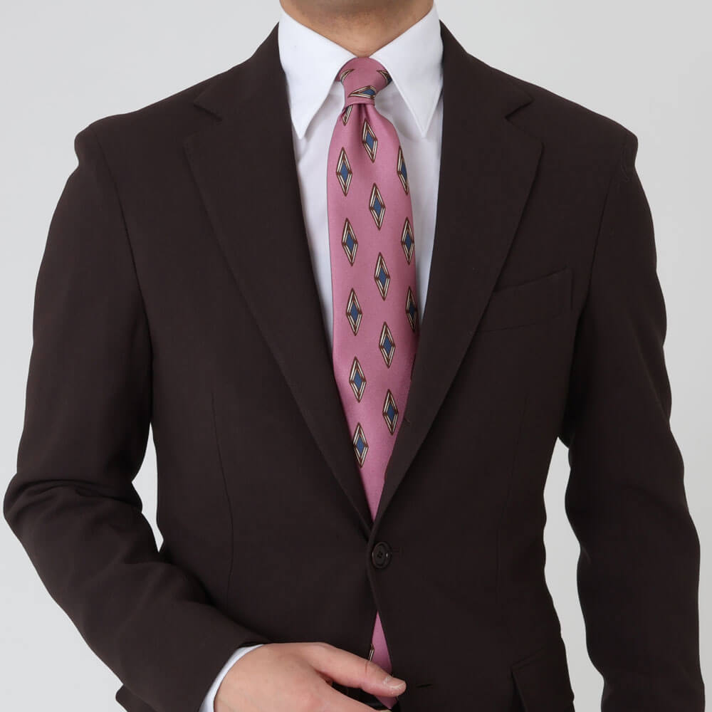 クラシックな柄ながら、規則正しい配置によってモダンなVゾーンに仕上がります。柔らかな生地で首元への負担が少なく、まるでスカーフのようなやさしいつけ心地でした。