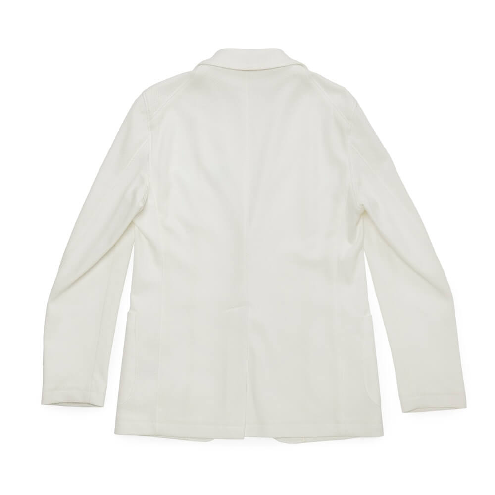 ・形状保持と立体感、そし着心地を良くするためにジャケットのキモとも言える襟と(前身頃の)見返し以外は一枚仕立て。裏地と胸ポケットを省き、筒袖が採用されています。袖丈が合えば、お直し無しで着られるお手軽な一着。極めて軽く柔らかな着心地が特徴です。