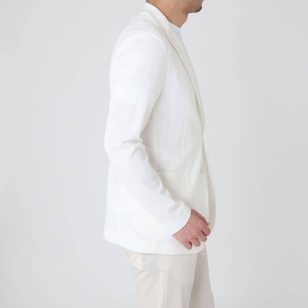・ジャージー生地ゆえに伸縮性は抜群の上、メッシュ編みなので通気性が良く、快適かつリラックスして着ていただけます。目付けは380グラムです。ネイビーとオフホワイトの2色をラインナップ。