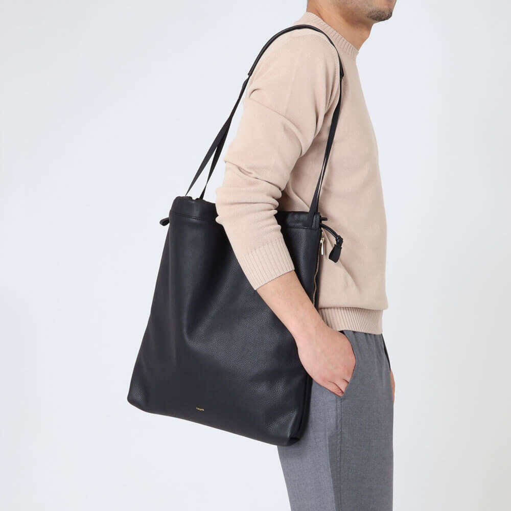 ・1stシーズンから展開している「texnh(テクネ)」を代表するTRIANGLE SHOULDERは、荷物の重みで自然に三角形に近いフォルムが生まれる、という独自性のあるデザインです。