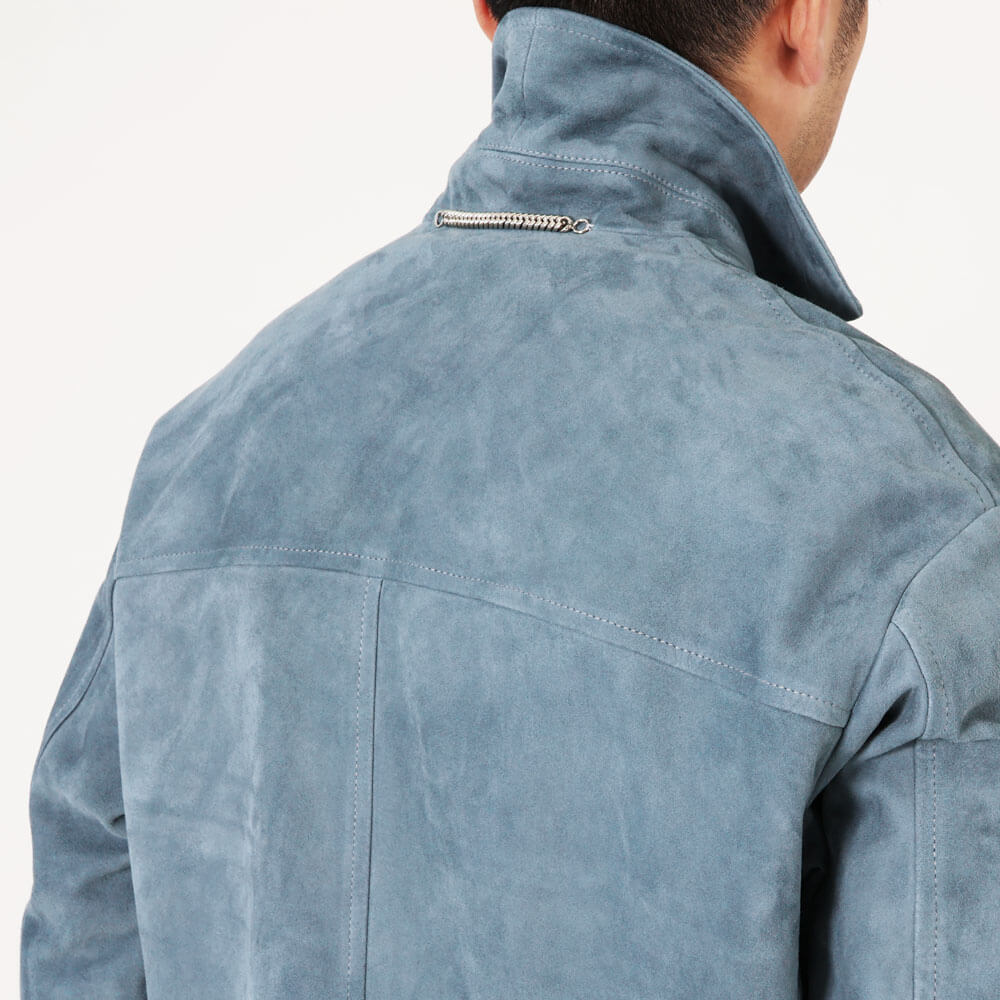 ②後ろ襟裏にチェーンフックを採用。シンプルなデザインのブルゾンにアクセントを付けています(実用性は薄いため、飾りとしてお楽しみください)