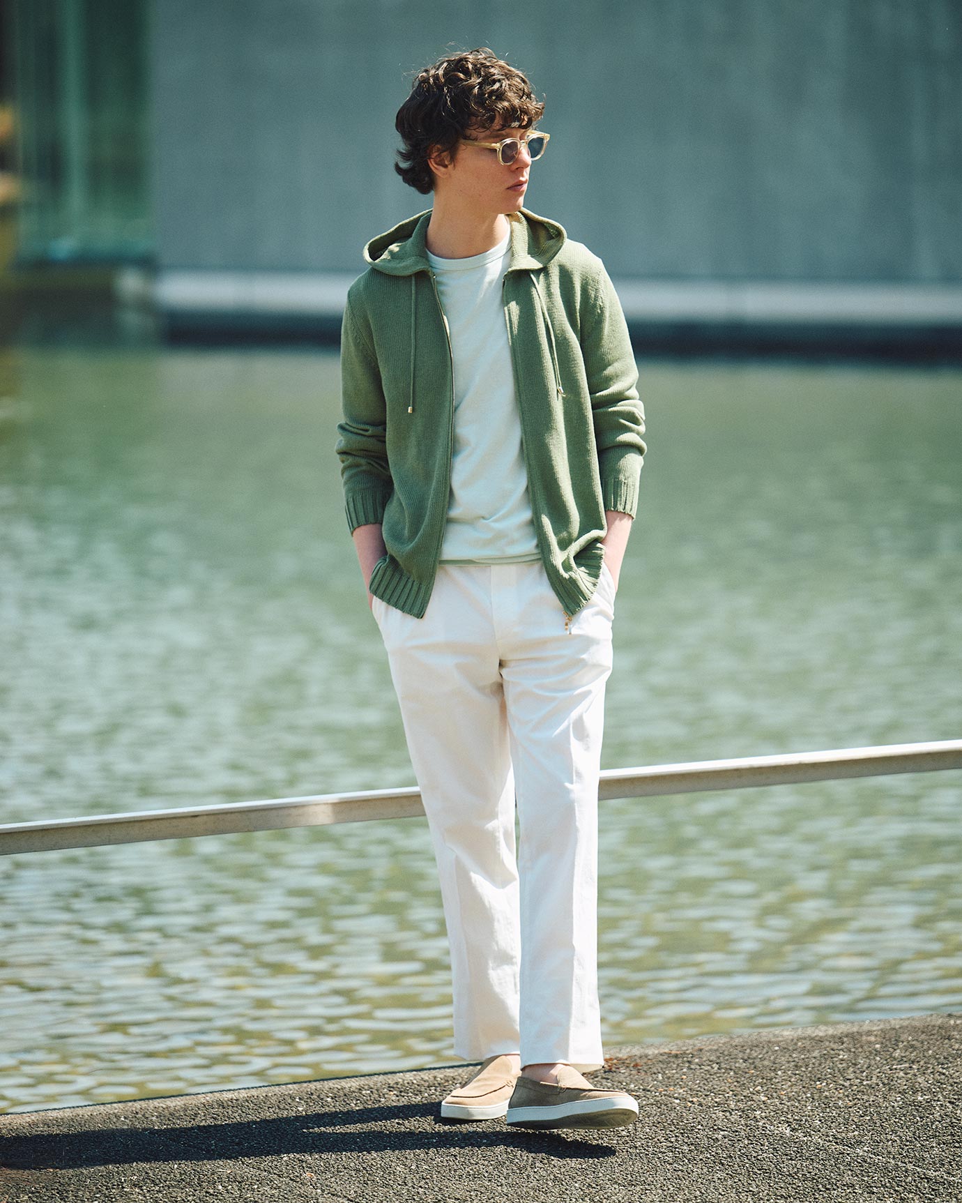 ・パーカーというモデル自体が別注。元々「Settefili Cashmere(セッテフィーリカシミア)」にあるニットパーカーをモディファイし、適度なフィット感が得られる肩幅とスリーブ、ほどよくゆとりを感じられるボディ、着丈や袖丈も含め、BRらしく上品でリラックス感のあるバランスとフィッティングを目指した仕上がりに。