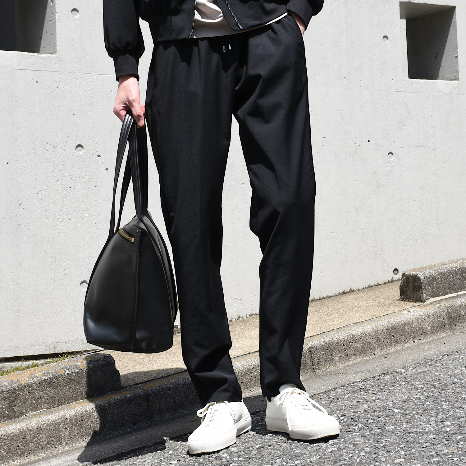 ・縦横のストレッチ性も備え、ストレスフリーな穿き心地が叶うハイブリッドな生地。ブラック1色のラインナップです。同じ生地を使ったニューモデルのパーカー"BONSI"も今後入荷します。