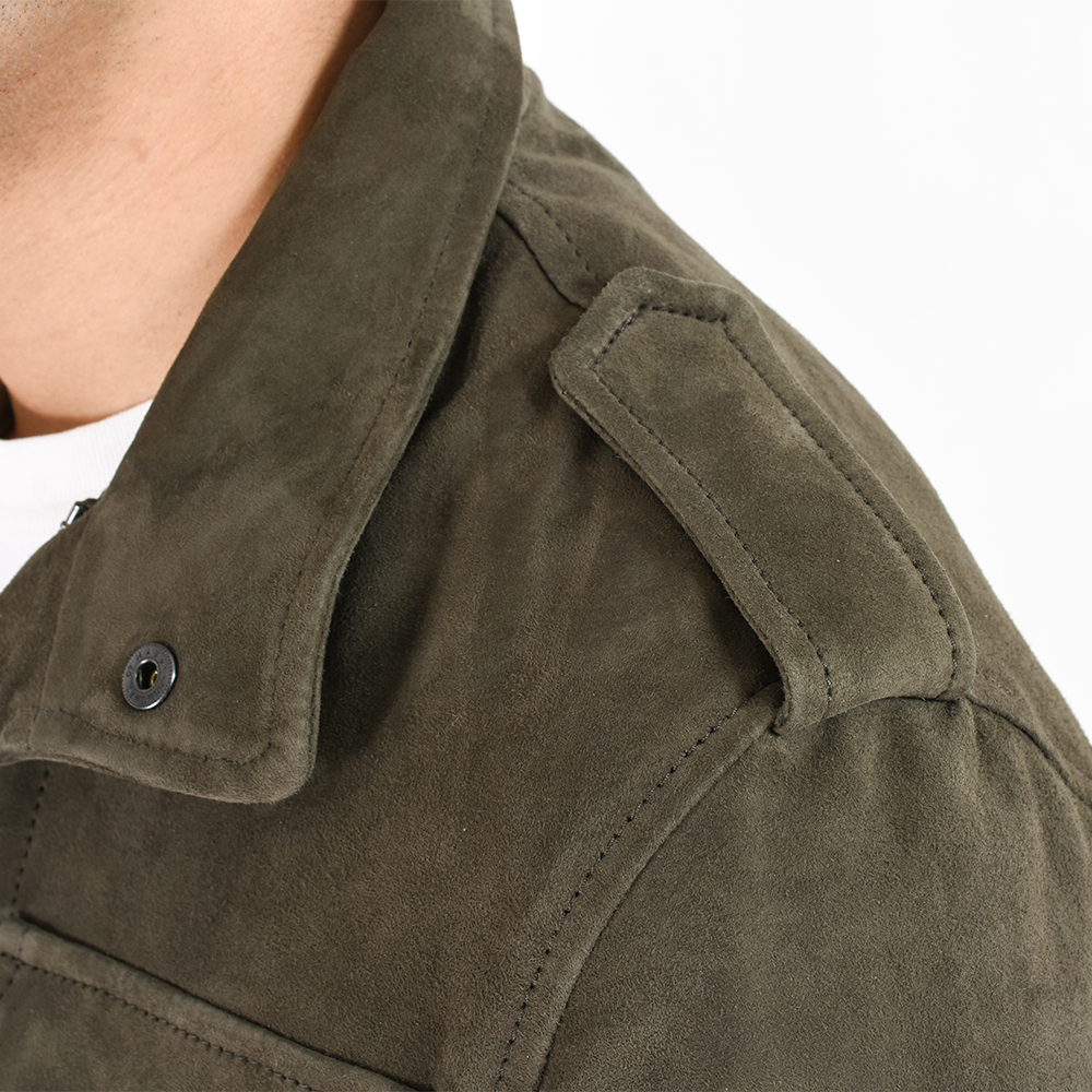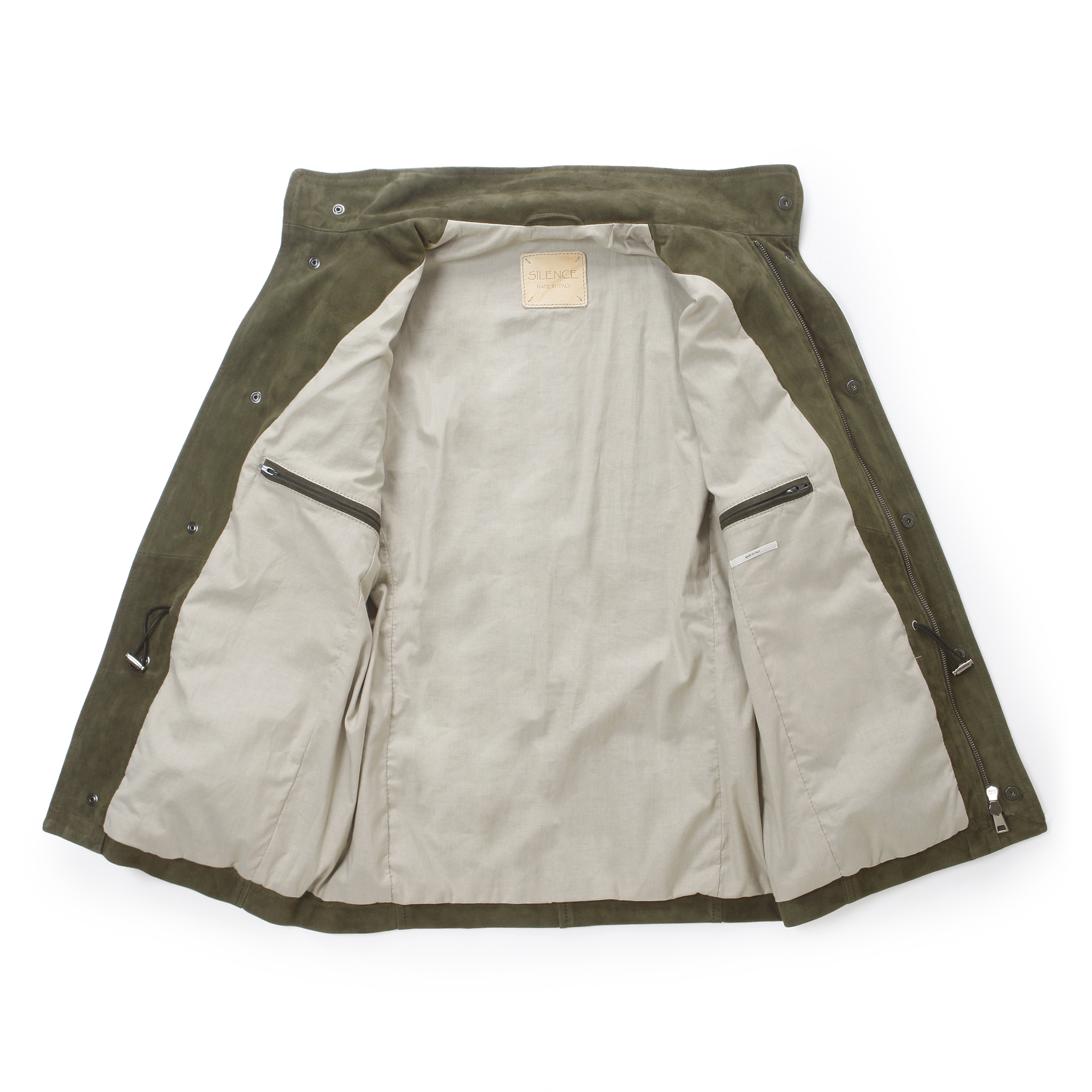 ・スウェードの柔らかさ、キメの細かさも特徴。メゾン系ブランドの生産を手掛ける「SILENCE(サイレンス)」ゆえ、レザーもメゾンクオリティー。使用しているゴートスキンスウェード(やぎ革)の手触りの良さは格別です。カーキ1色のご用意です。