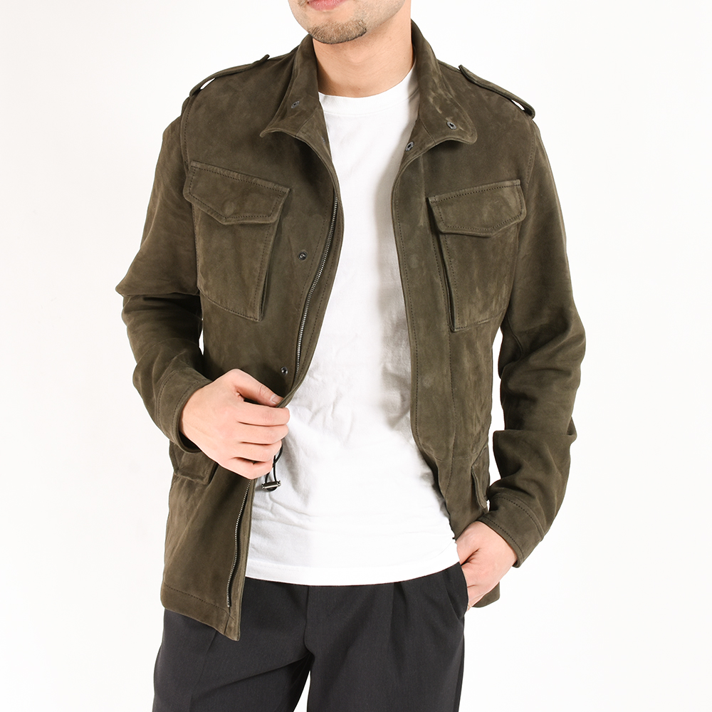 ・土臭くは決して見えないカーキスウェードを載せることで品の良さをキープ。M65のデザインを踏襲しながらもポケットやフラップ、エポーレットの見え方が控えめなのも着やすく、合わせやすいポイント。ウェスト部分にドローコードが内蔵されているので、フィット感を強めたい際は絞ることができます。