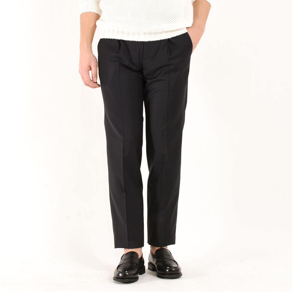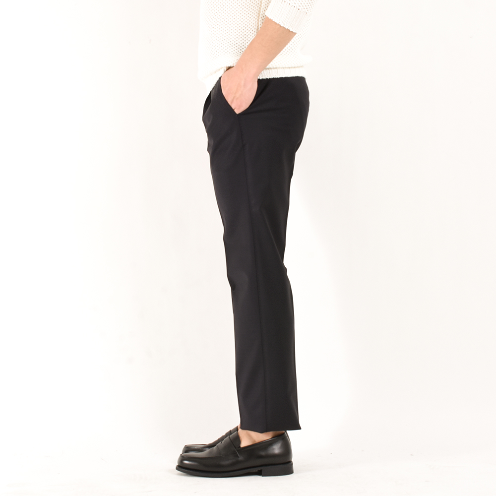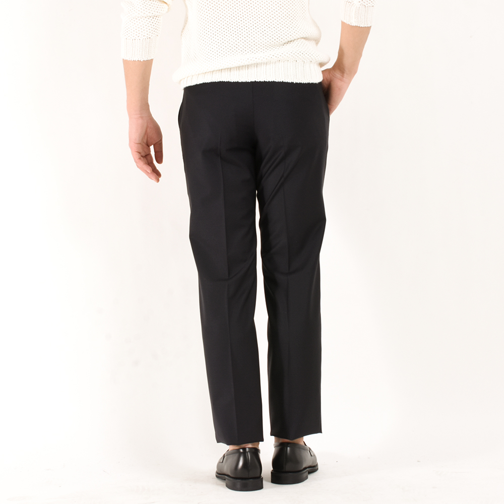 ・腰廻りのホールド感の良さは言わずもがな。ワタリからスソまでなだらかにテーパードするスリムなシルエットは実にエレガントです。ステッチワークや両玉縁ポケットといったディテールも美しく仕上げられた高品質なメイドインジャパン。ベーシックな3色をご用意しました。