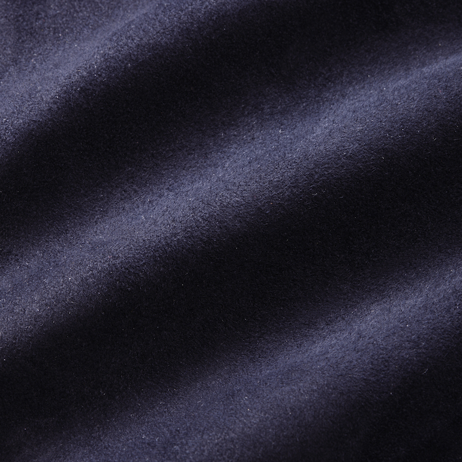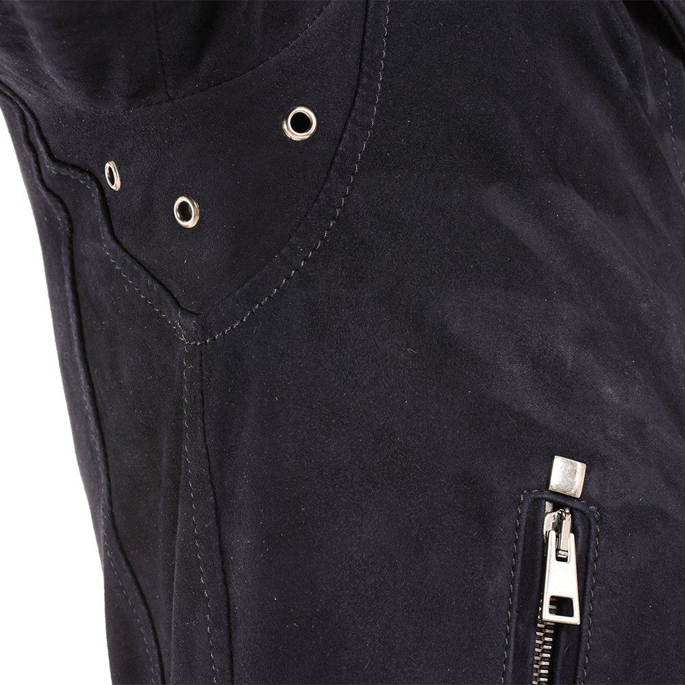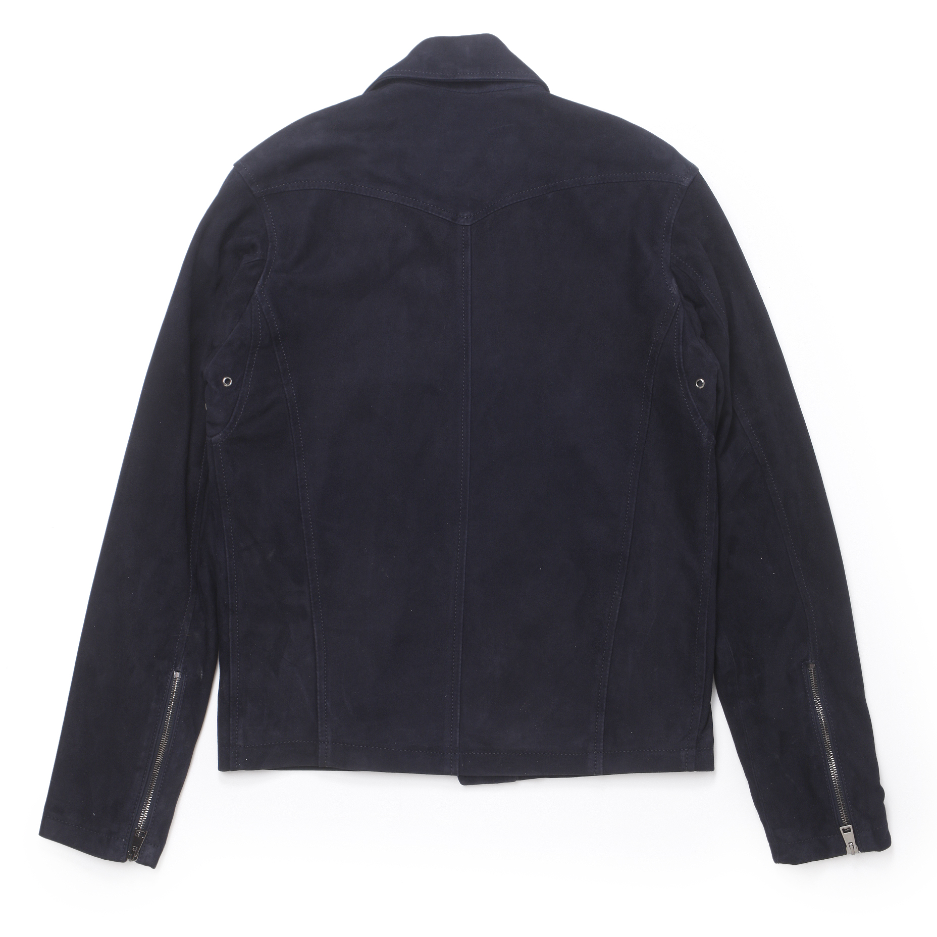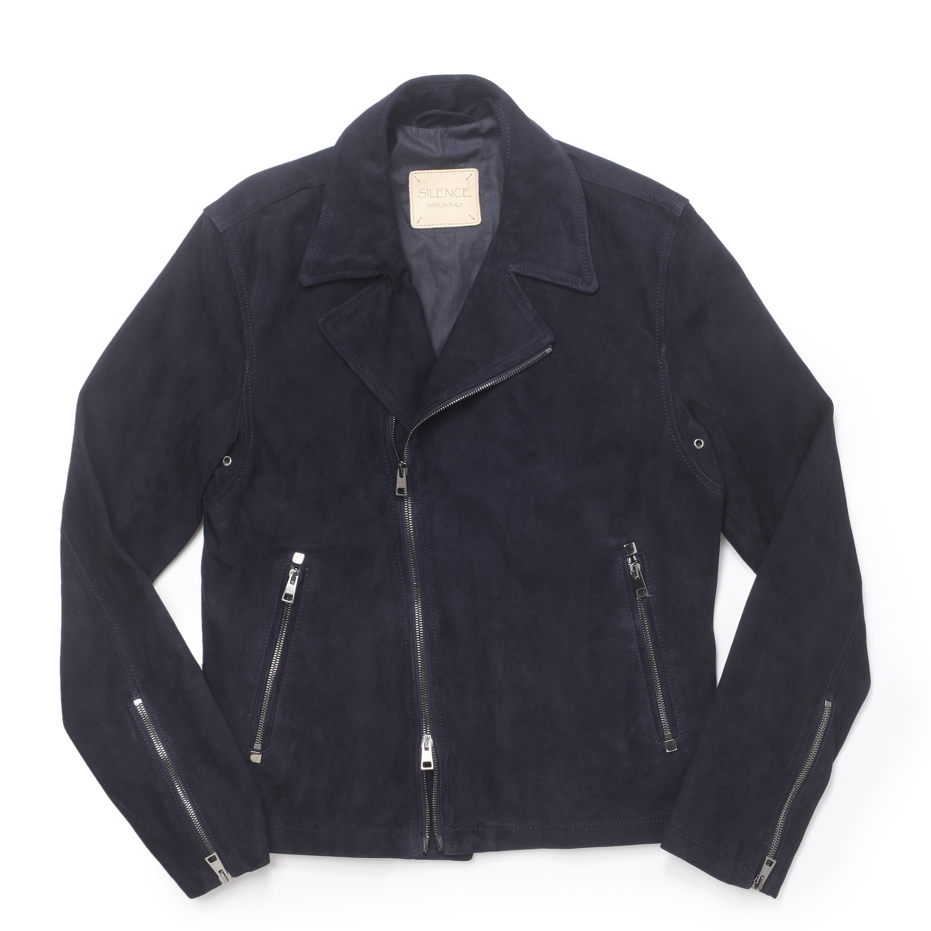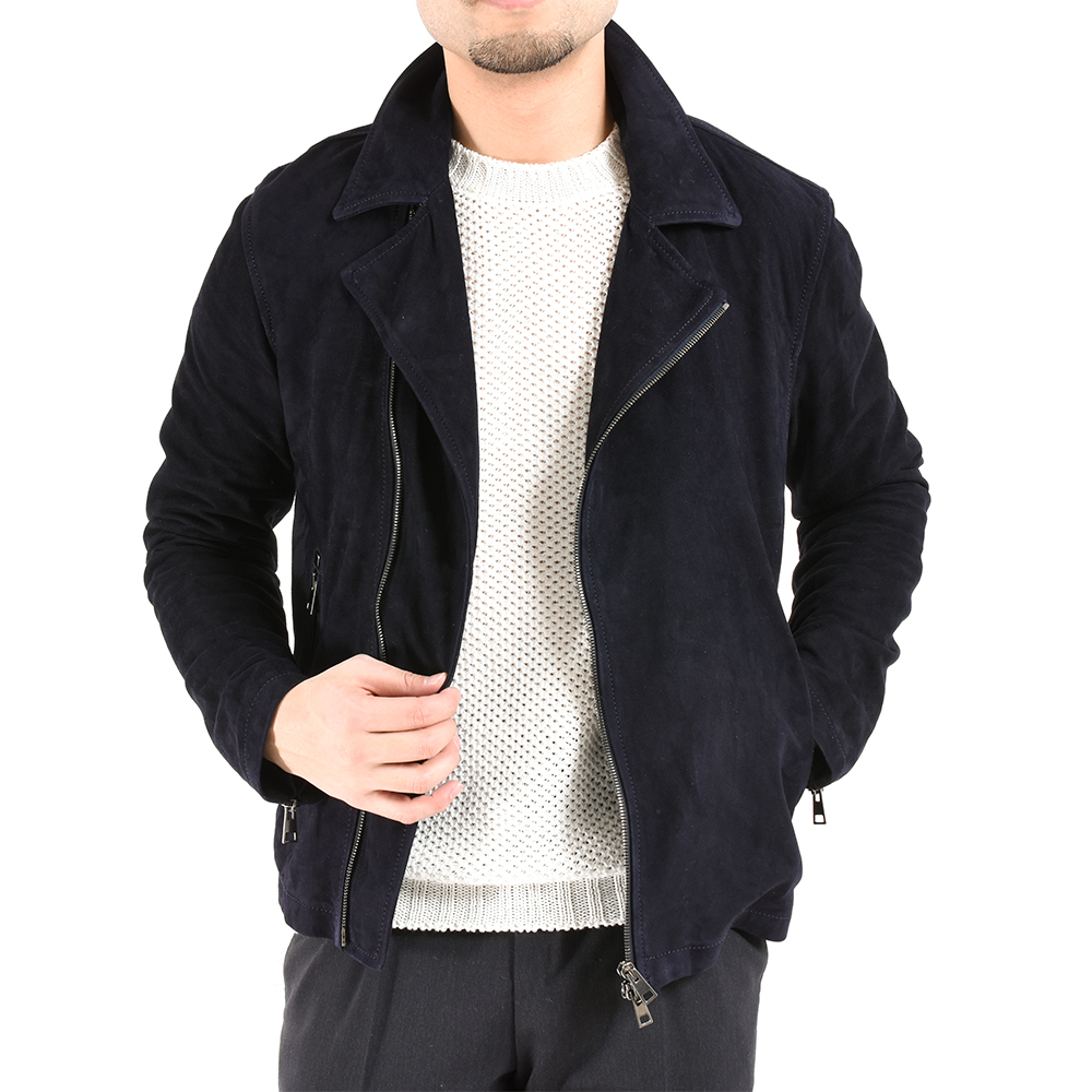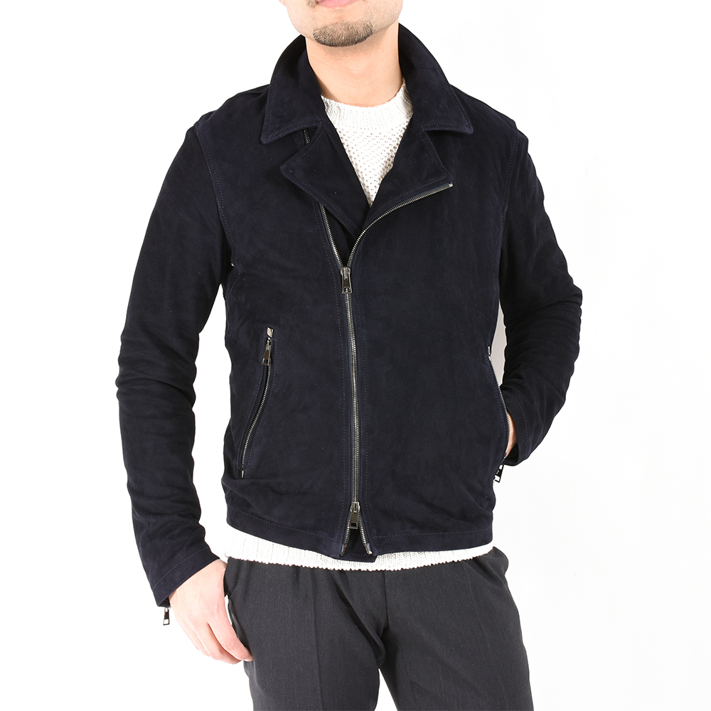 ・深みある色合いのネイビースウェードゆえの上品さ、適度なサイジングによるフィット感の良さが秀逸です。また、ライダーズ特有のディテールは最小限に留め、シンプルな見た目を実現。カジュアルなボトムズで着こなすのも良いですが、ウール系スラックスを合わせて上品に着こなしたい1着です。