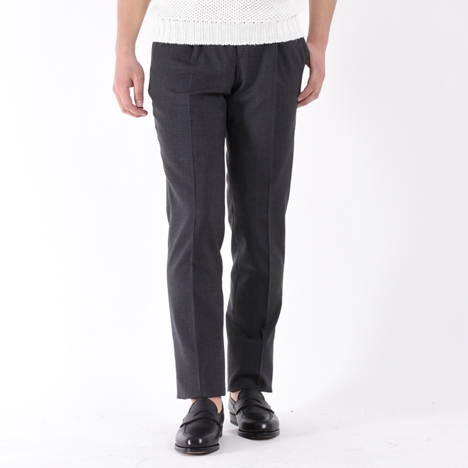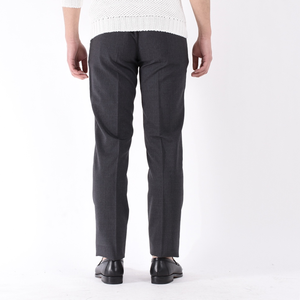 ・今のPTを代表するモデルである"GENTLEMAN FIT"はドメニコ・ジャンフラーテ氏がディレクターに就任して生み出したもの。しっかりと確保された股上寸によって腰廻りのホールド感が良く、プリーツの入ったやや余裕ある腰廻りとテーパード感あるシルエットが特徴です。このような絶妙バランスがゆえ、もちろんジャケットに合わせられ、スニーカーにも合わせられる、といういま最も求められるシルエットに仕上げられています。この完成度の高さ、見逃すことはできません!