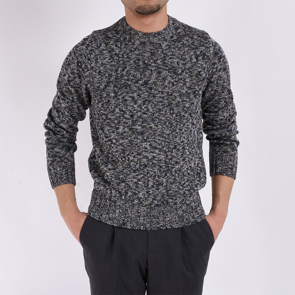 ・締めつけ感がなく、ほどよくユルさのある絶妙なクルーネック。リブもミドルゲージに相応しい幅に設定されており、スタンダードなデザインが特徴。適度にフィット感が得られるサイジングです。