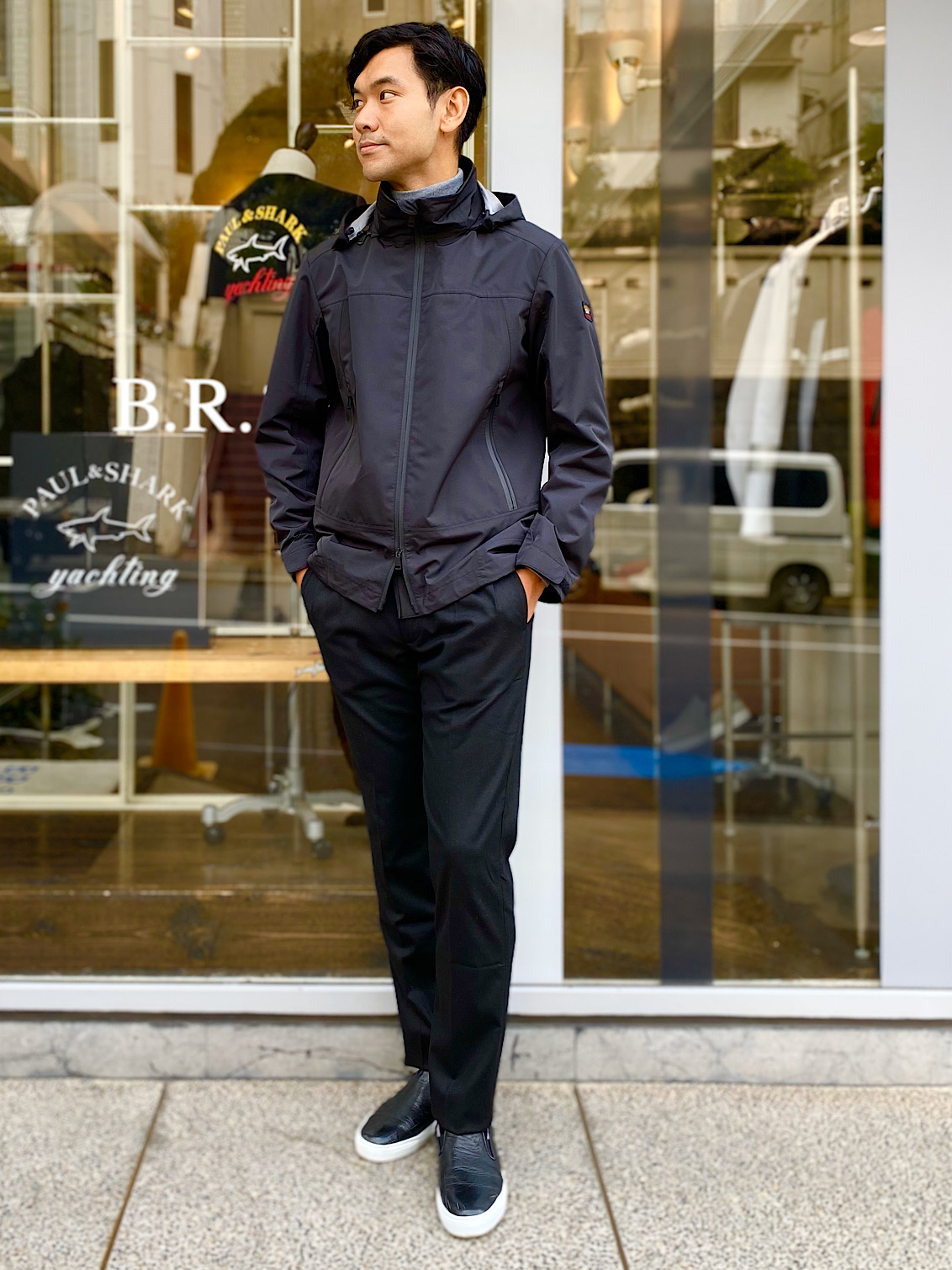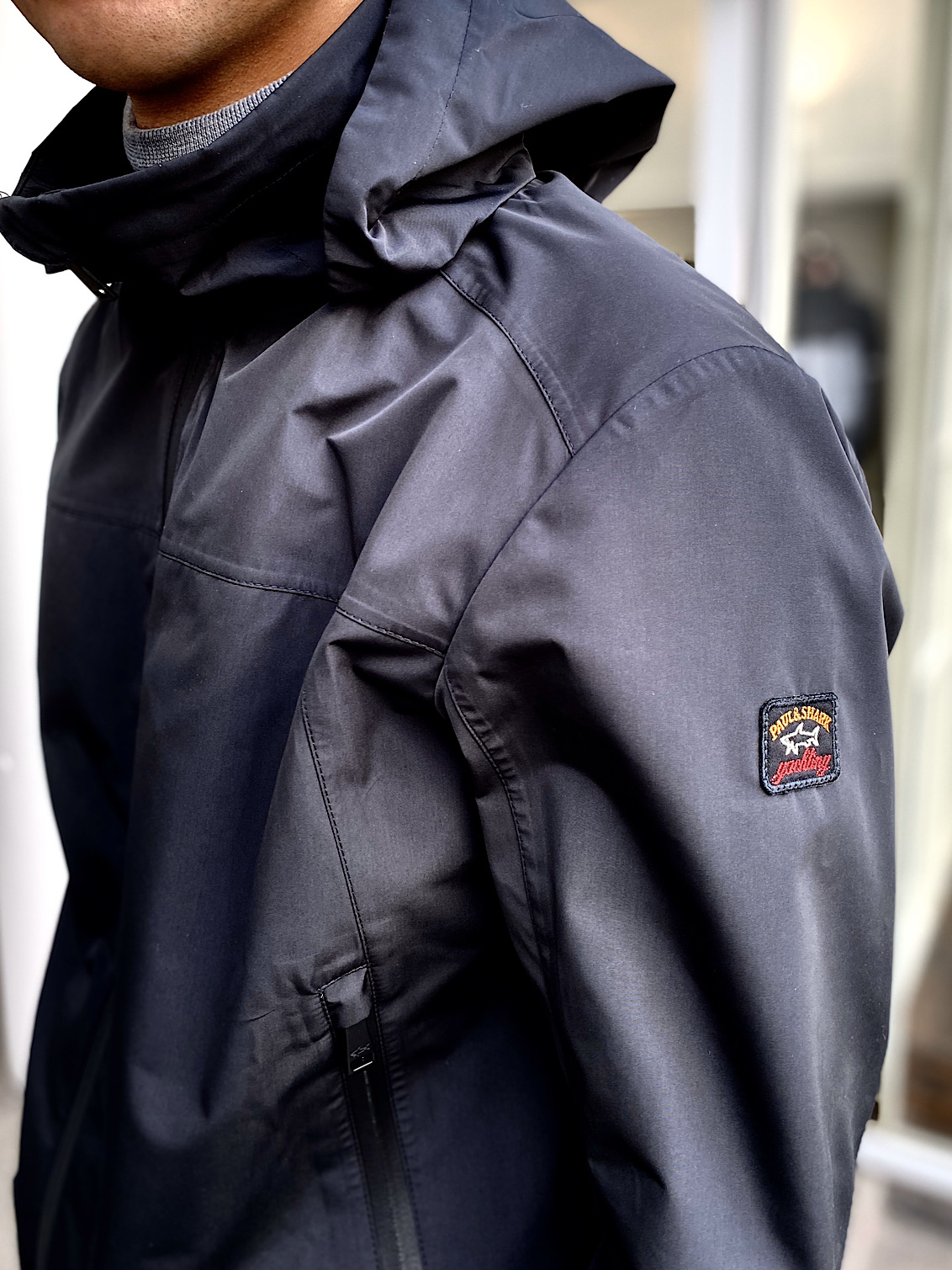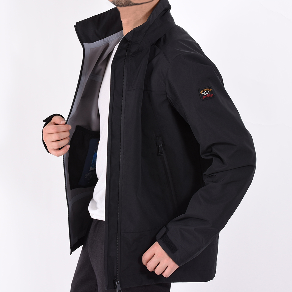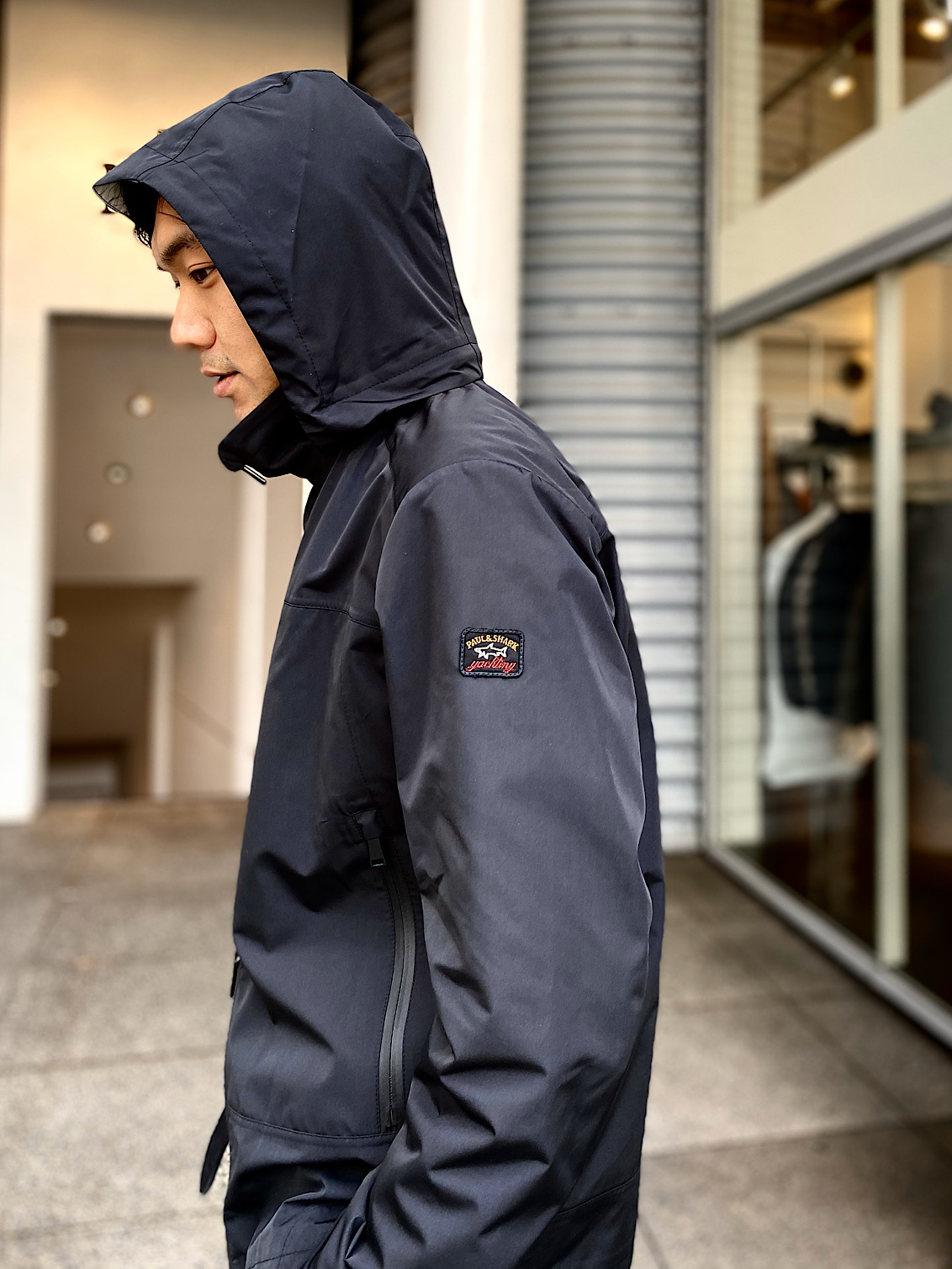 ・シェルに採用されている"TYPOON 20000"は「PAUL & SHARK(ポールアンドシャーク)」が自社開発した特殊なポリエステル素材。厳しい環境で行われるヨットレースにも耐え得る独自技術で、ポリエステルの上から特殊なフィルムで加工することで高い防水性と防風性を実現。縫い目にもテーピングを施してあるので風を遮断、保温性を高めるなど細部までこだわって作られています。