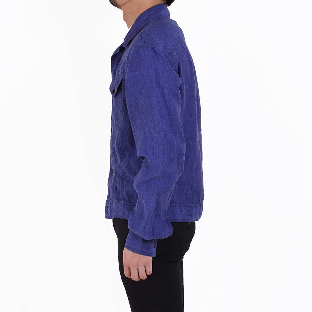 ディテールや丈感のバランスとしてはジージャンをモチーフにしていますが、素材はリネン100%という軽〜く羽織れる1着に。着ていく内にリネン特有のシワ感も風合いとして楽しめるでしょう。春夏カジュアルスタイル用の羽織り物を探されている方には、小技が効いていてオススメです!リネンシャツ同様の生地感なので、真夏でも着用できそうなくらい涼しげです。少しゆったりしているので、パンツは細身の物を選ぶのが個人的には◎