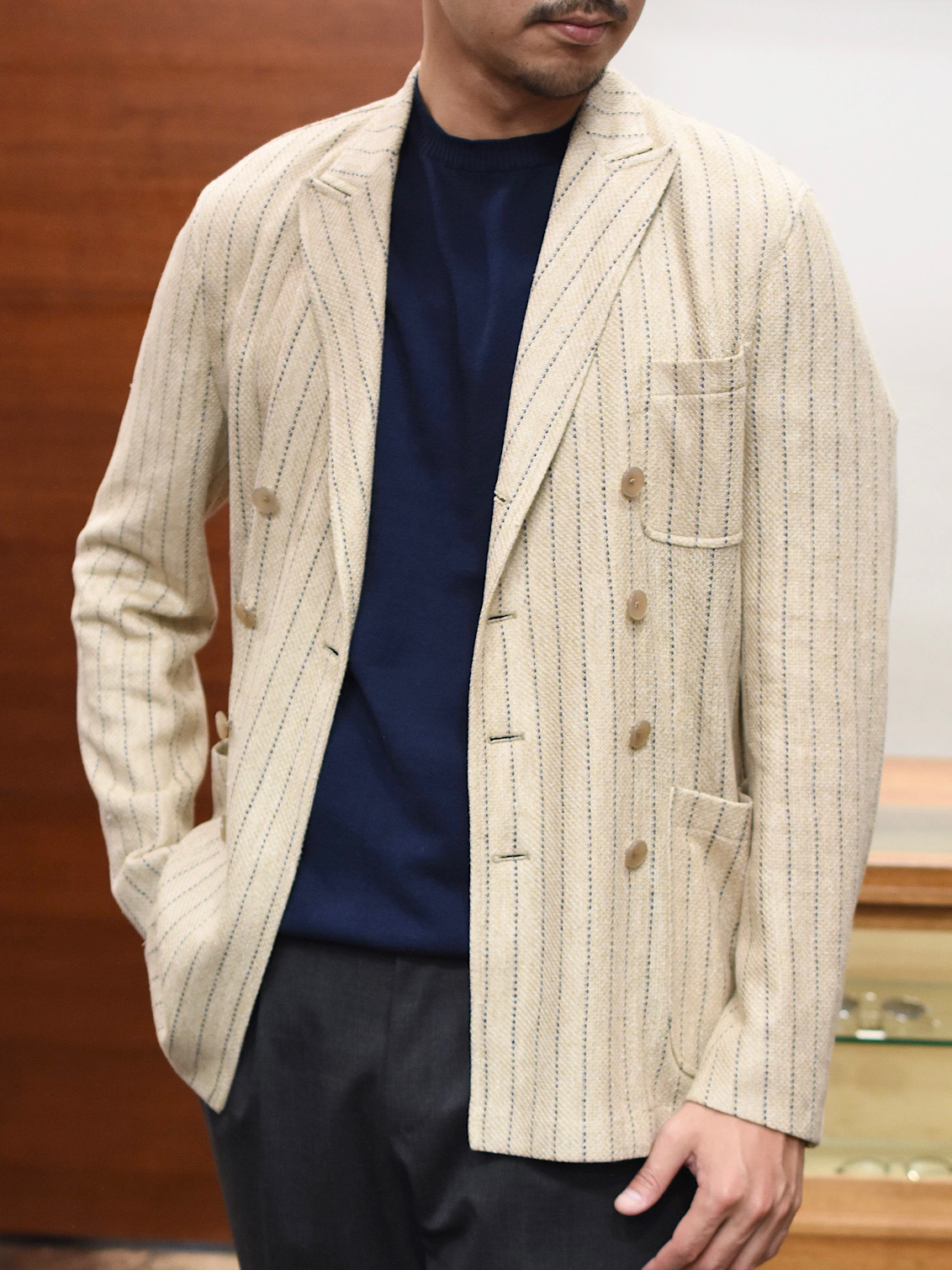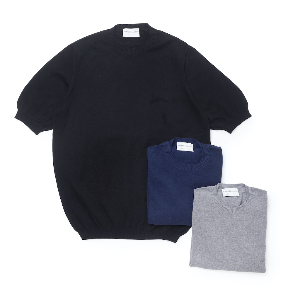 ・さらに従来の「Settefili Cashmere(セッテフィーリカシミア)」のクルーネックよりもネック周りを少しだけ小さくすることで、伸びやすい春夏ニットの弱点を解消!ジャケットのインナーに合わせた際にも収まりが良いデザインに仕上げました。