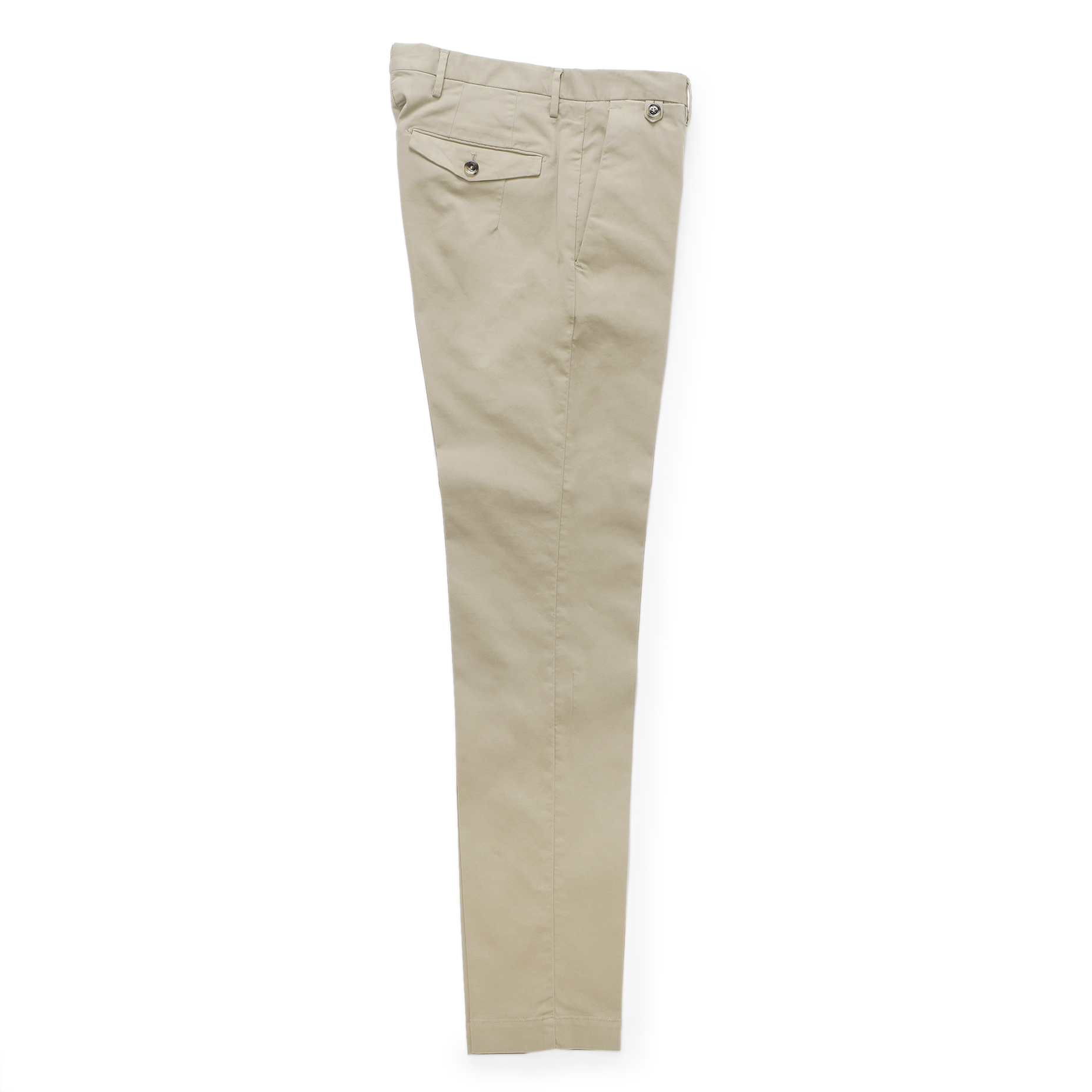 カジュアルながら、品の良さを演出してくれるこちらのコットンパンツ。なぜなら、ピシッと入ったセンタークリースや、綺麗な細身のシルエットだからです。「カジュアルな印象だけど品の良さがあるパンツ」を求める方には、是非お勧めしたい一本です!ハリのあるコットンですが、ほんのりストレッチが効いているので、ノンストレスで着用して頂けます。細身体型でモデルGENTLEMAN FITだとサイズ42ですが、こちらのモデルはサイズ44でジャストサイズでした。