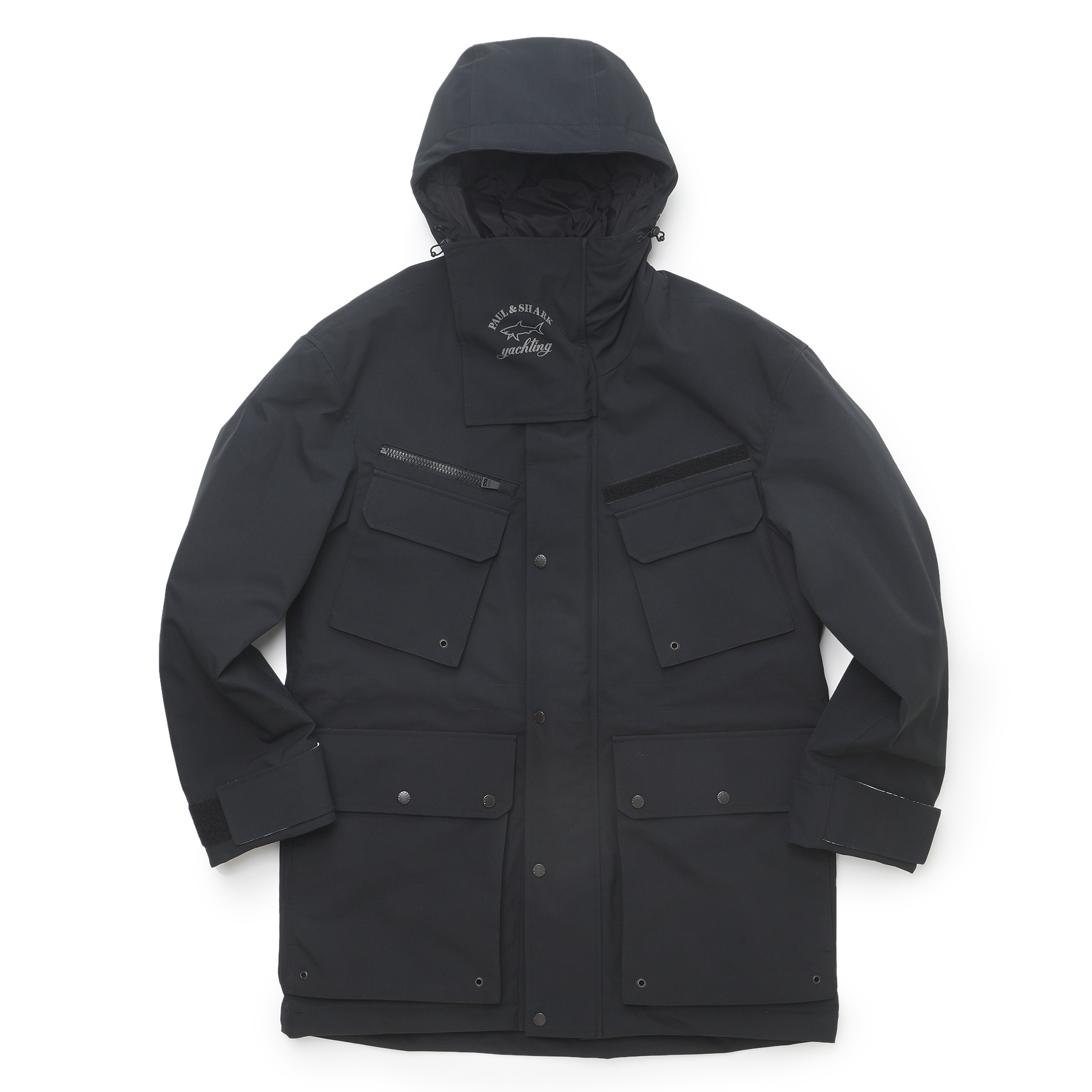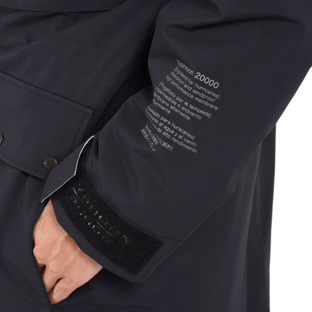 ・シェルに採用されている"TYPOON 20000"は「PAUL & SHARK(ポールアンドシャーク)」が自社開発した特殊なポリエステル素材。厳しい環境で行われるヨットレースにも耐え得る独自技術で、ポリエステルの上から特殊なフィルムで加工することで高い防水性と防風性を実現しました。