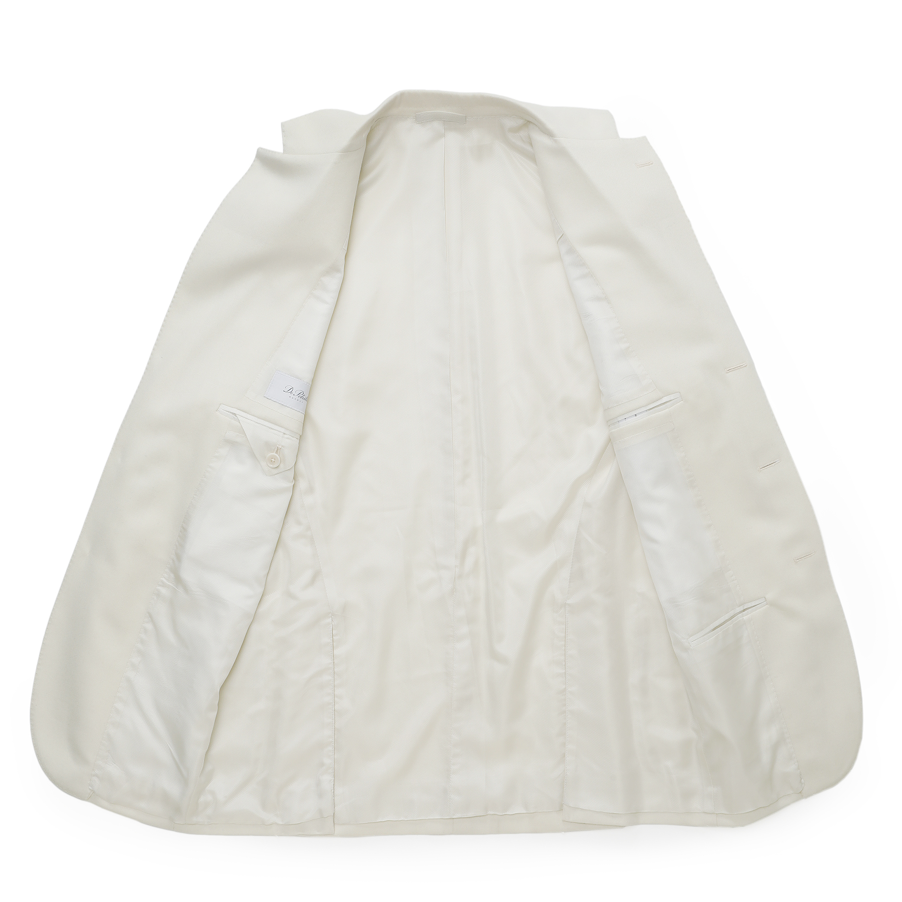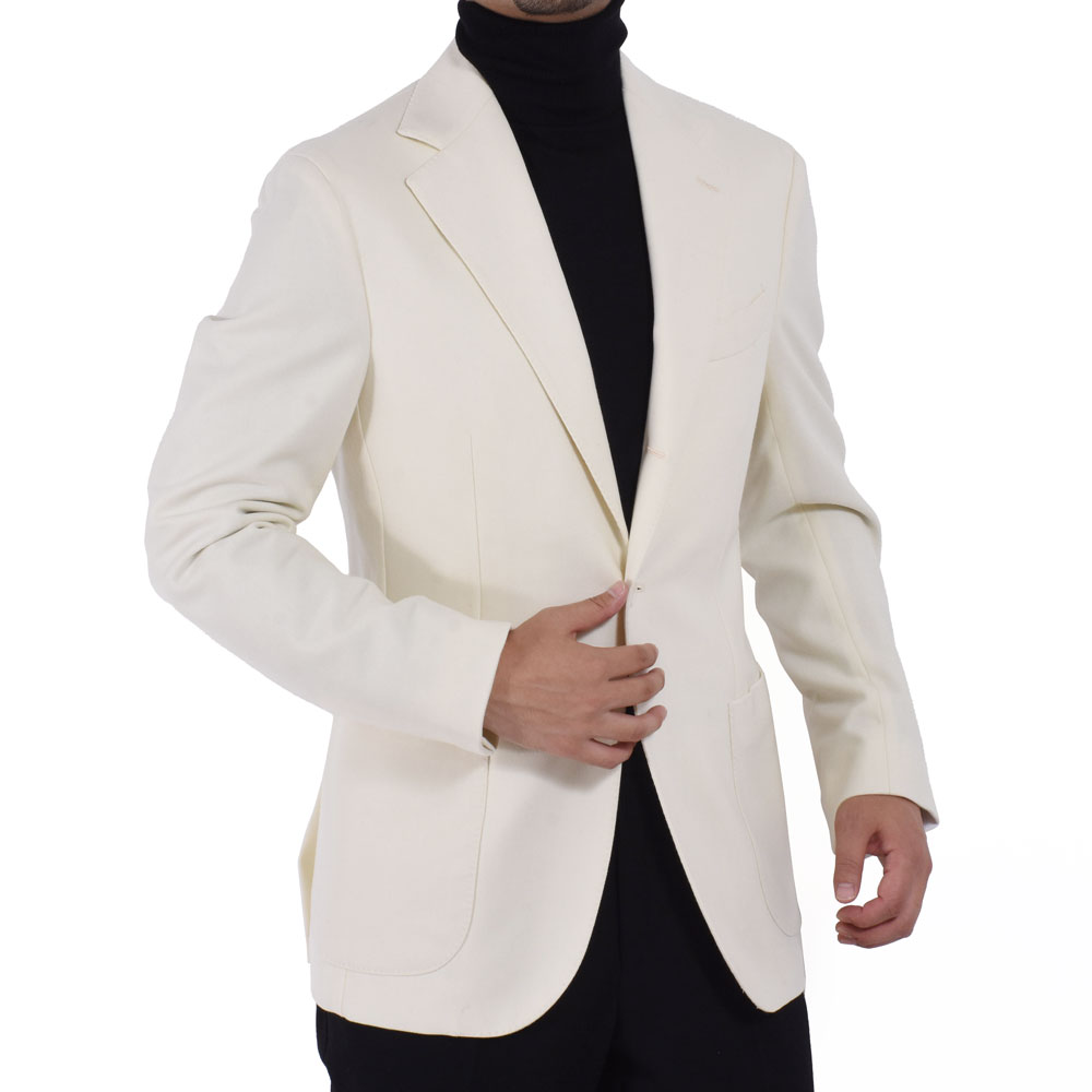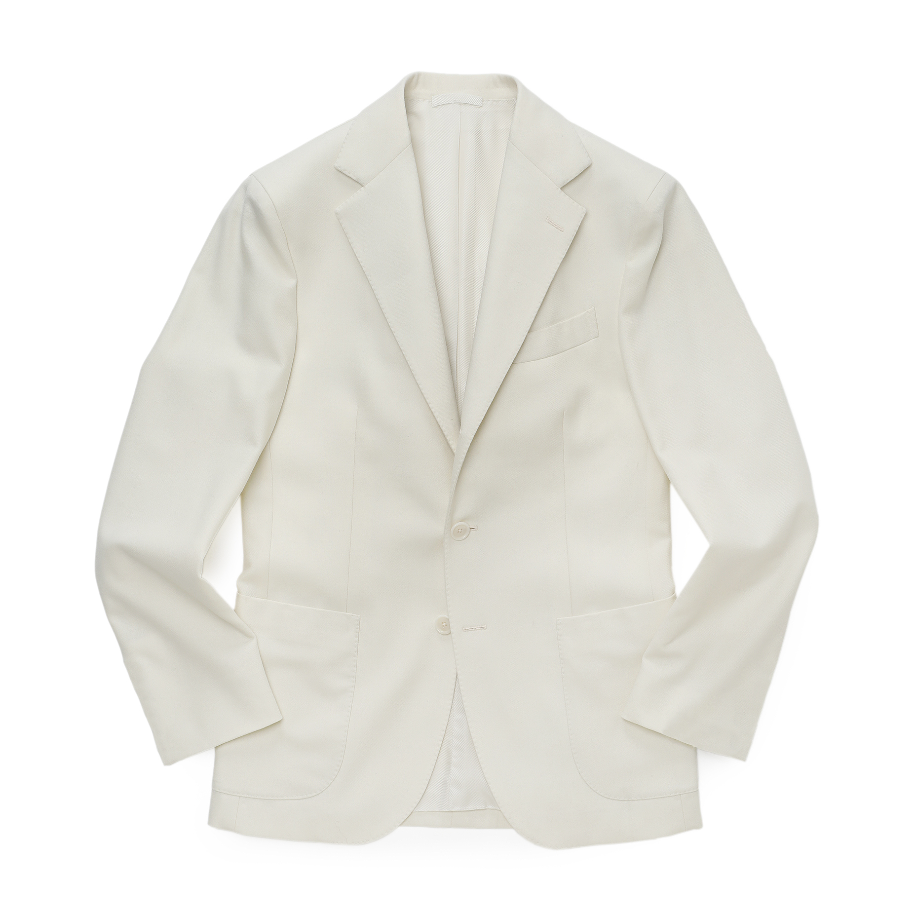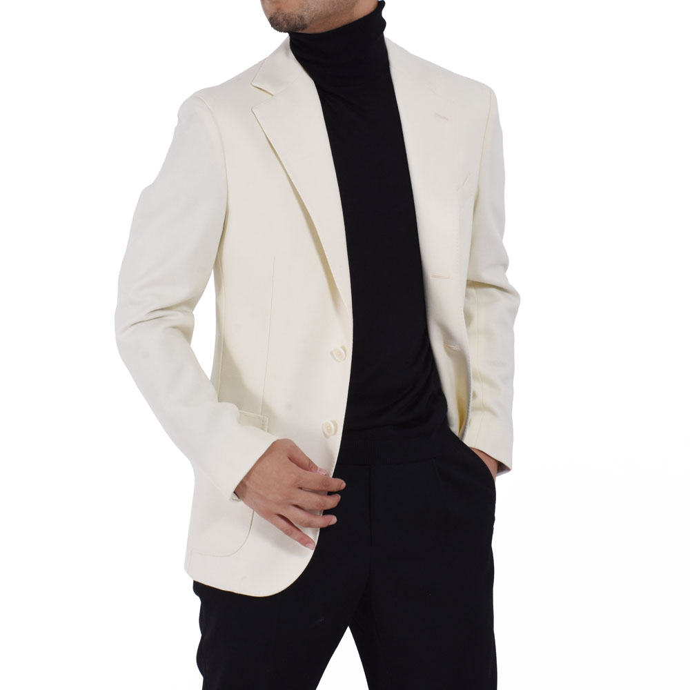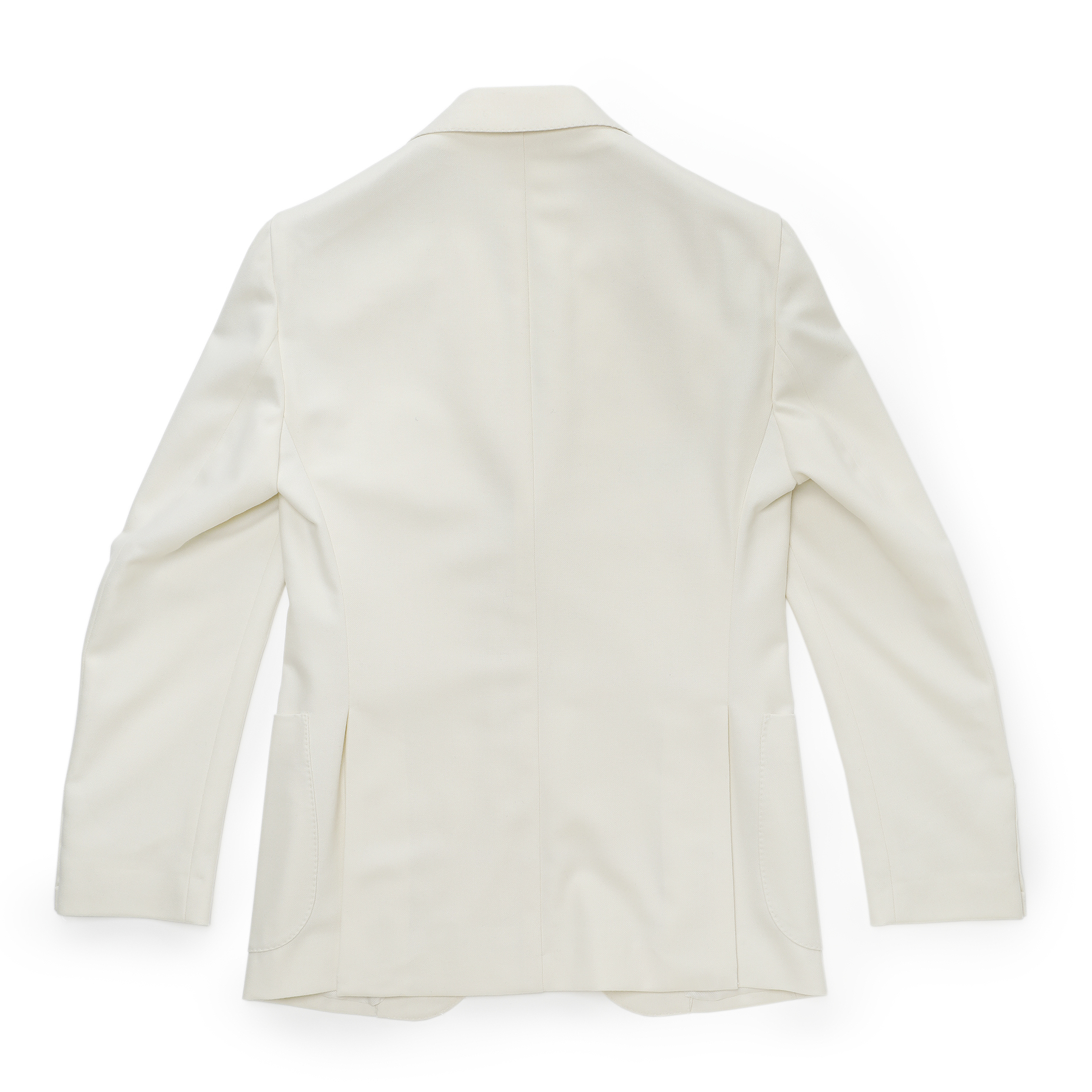 ・春夏でも秋冬でも、つまりオールシーズン、白を推すBRからサキソニーの"白ジャケ"が登場!ほんのり黄色味掛かった色合いが実に上品。ハリとコシはありながらも柔らかな生地感で目付は340グラムです。