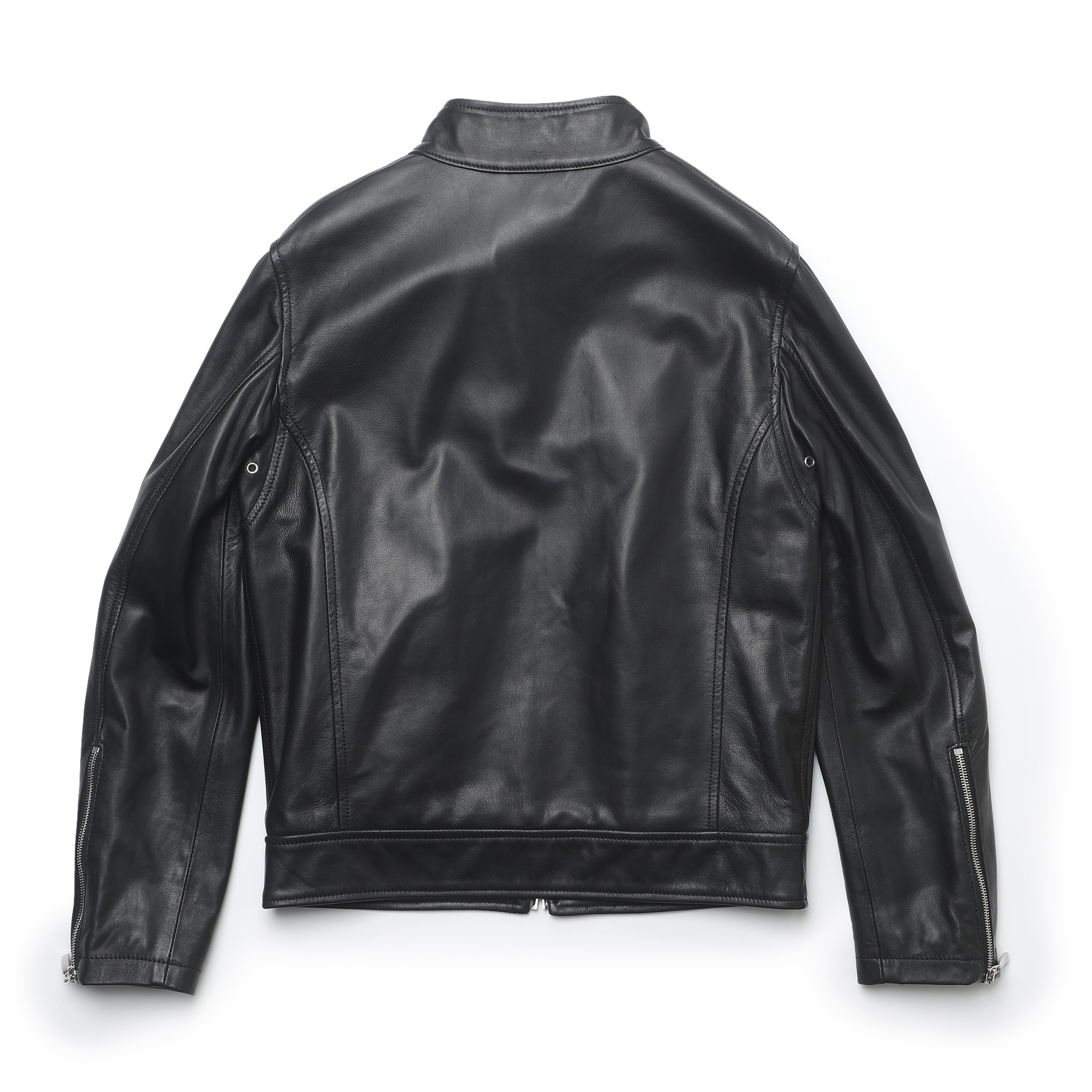 ・自然なシルエットを描くフィッティングで、以前のシングルライダースは背中にアクションプリーツが付いていましたが、今シーズンからは無し。運動量を確保しながらシンプルな見え方となり、一段と洗練された仕上がりに。